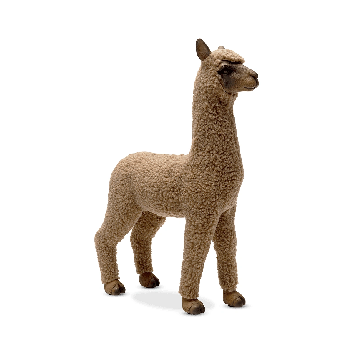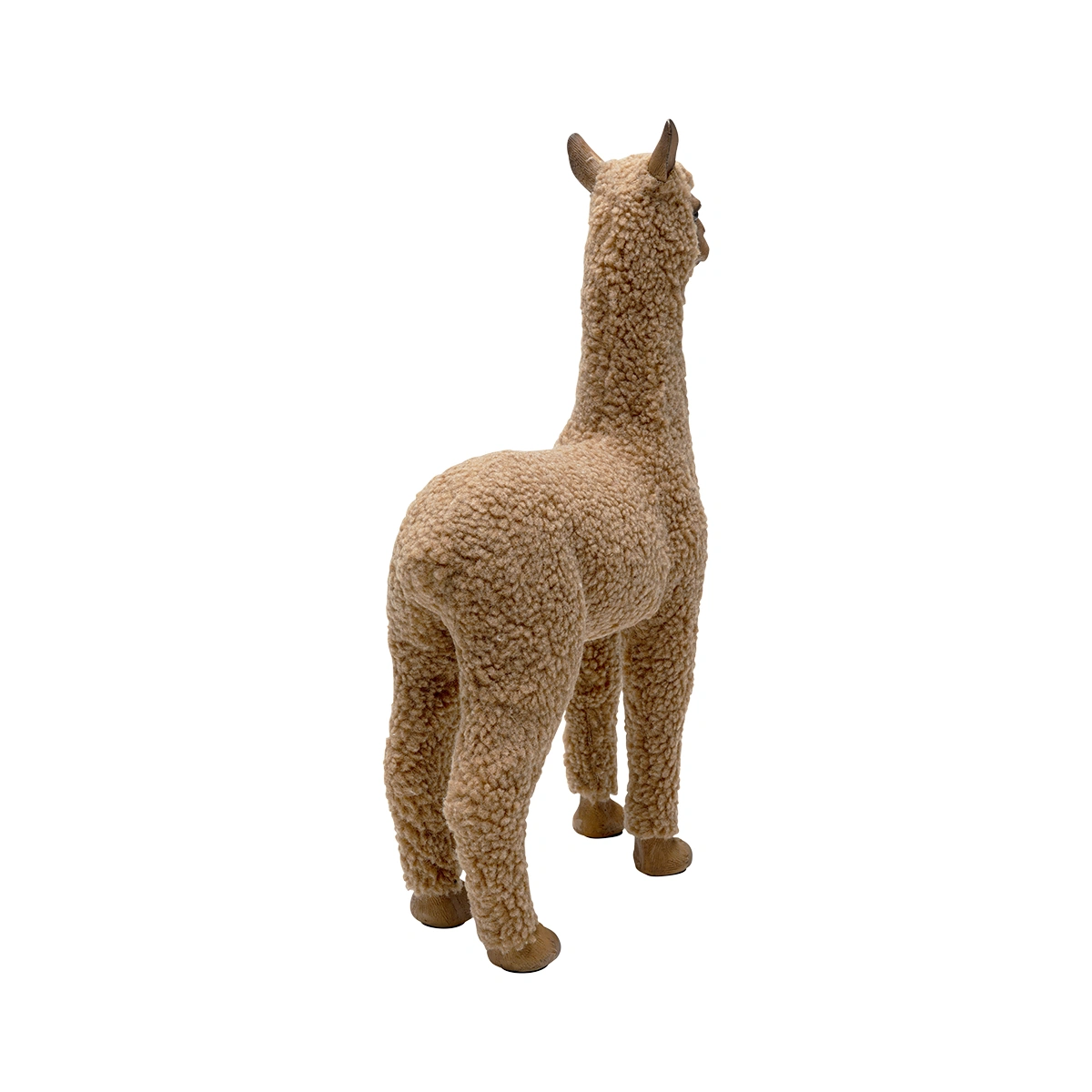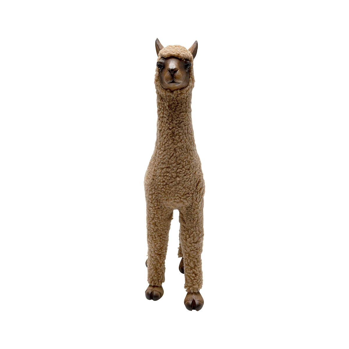 Standing at 37.5cm in height and artfully hand-painted, this charming decorative alpaca figurine is made from dimensionally stable polyresin, covered with cozy synthetic polyester fur. Its detailed workmanship and unique design make it a stand-out piece. This cute brown alpaca figurine is not just a decorative item, but an expression of your creative taste.