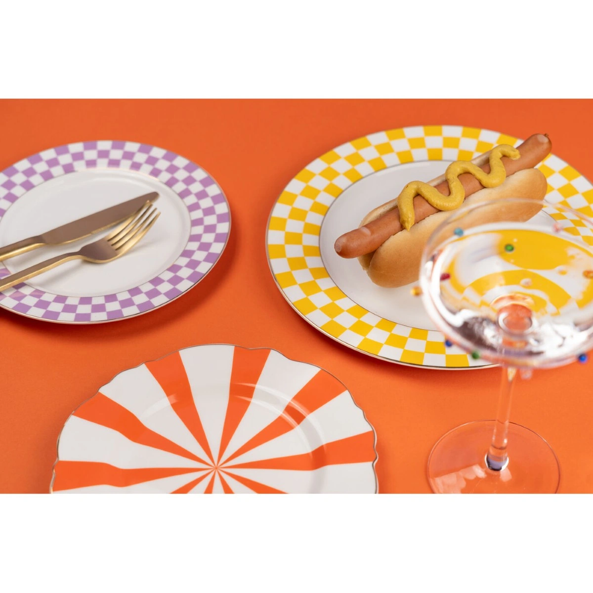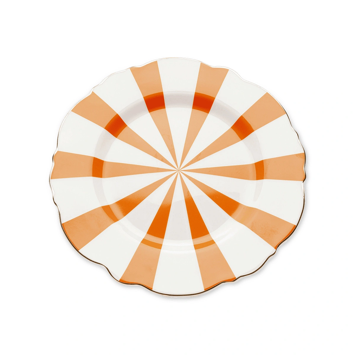 Introducing the Small Harlequin Plate in vibrant orange fine bone china porcelain, a perfect infusion of retro design and modern aesthetics. This unique tableware piece is a part of our renowned Harlequin series that beautifully combines classic shapes with colorful accents.