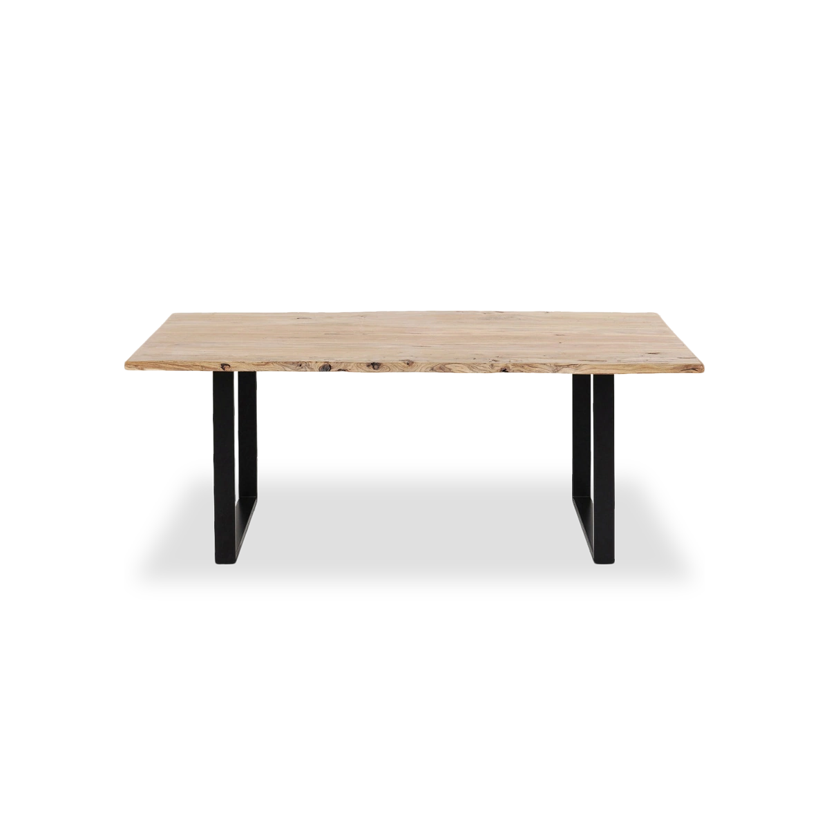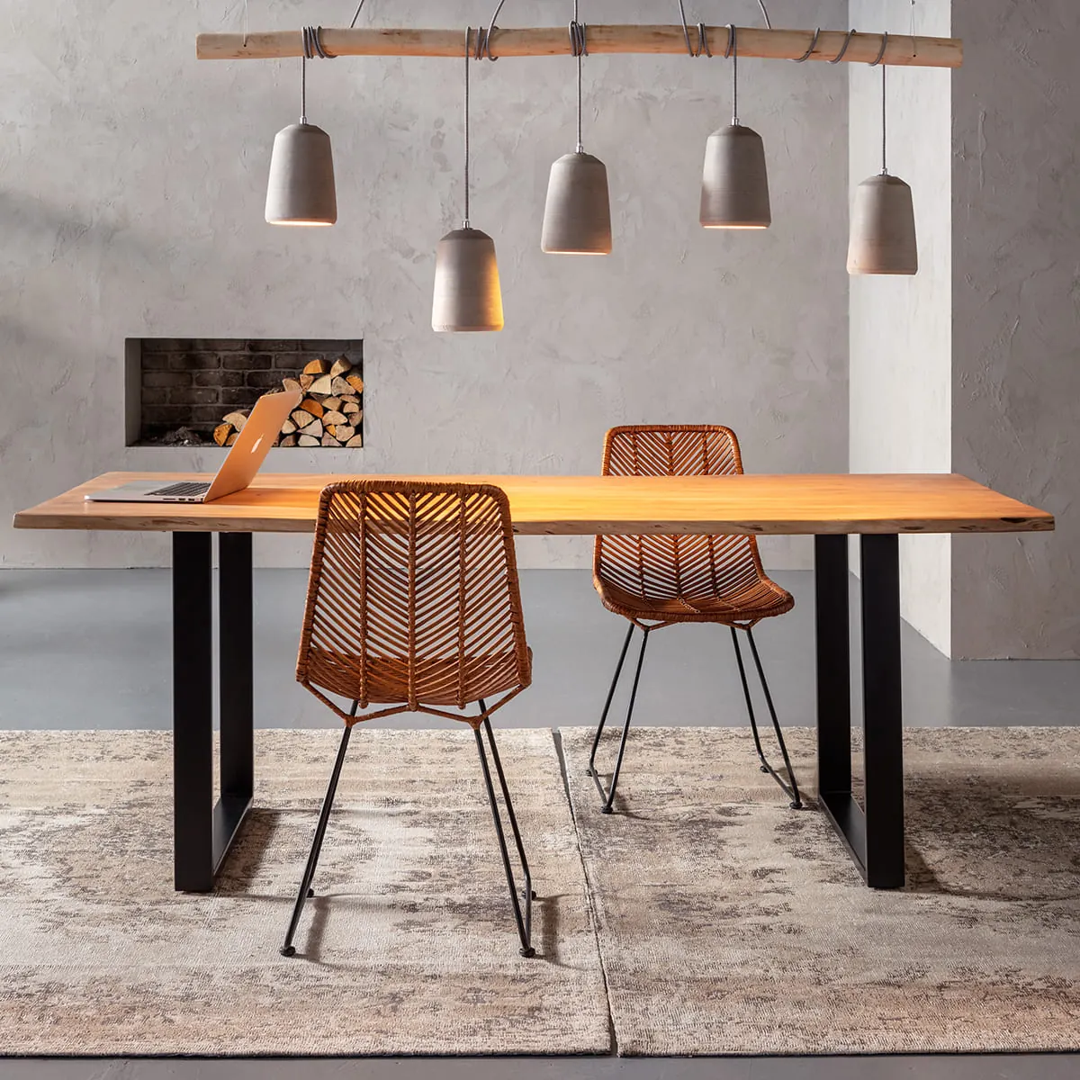 • A rectangular dining table for the whole family with a solid acacia wood top on stylish black steel legs in the industrial style
