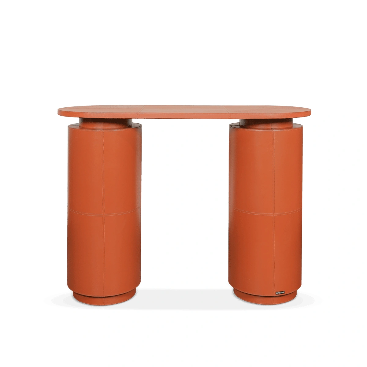The Havana Console Table in cognac brown leather and plywood is a statement of understated opulence. Its sleek surface and soft texture make it an ideal piece for both aesthetic and functional purposes.