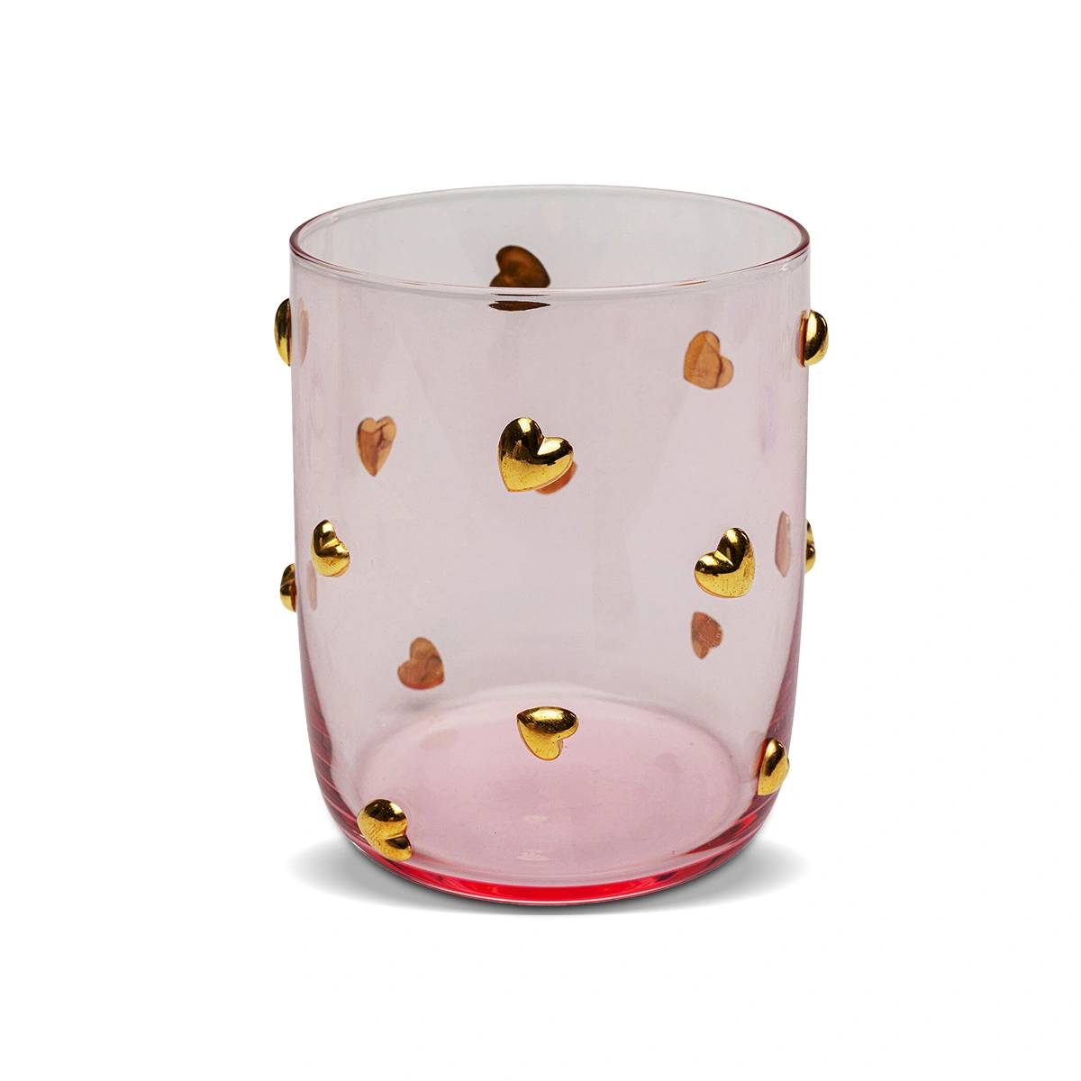 • Gold-coloured hearts and the delicate pink make this glass very special
