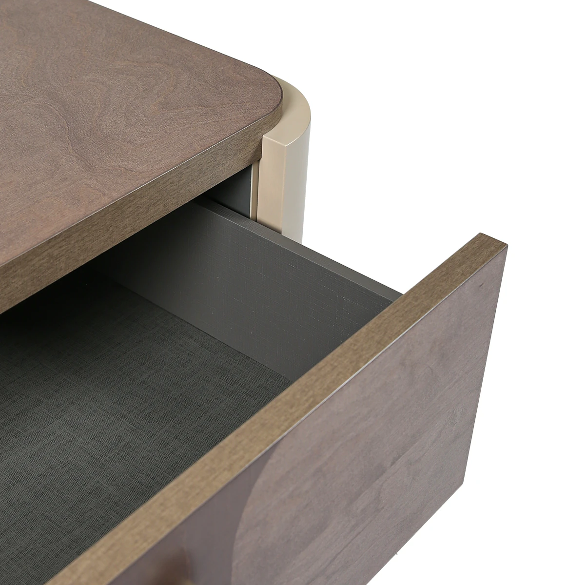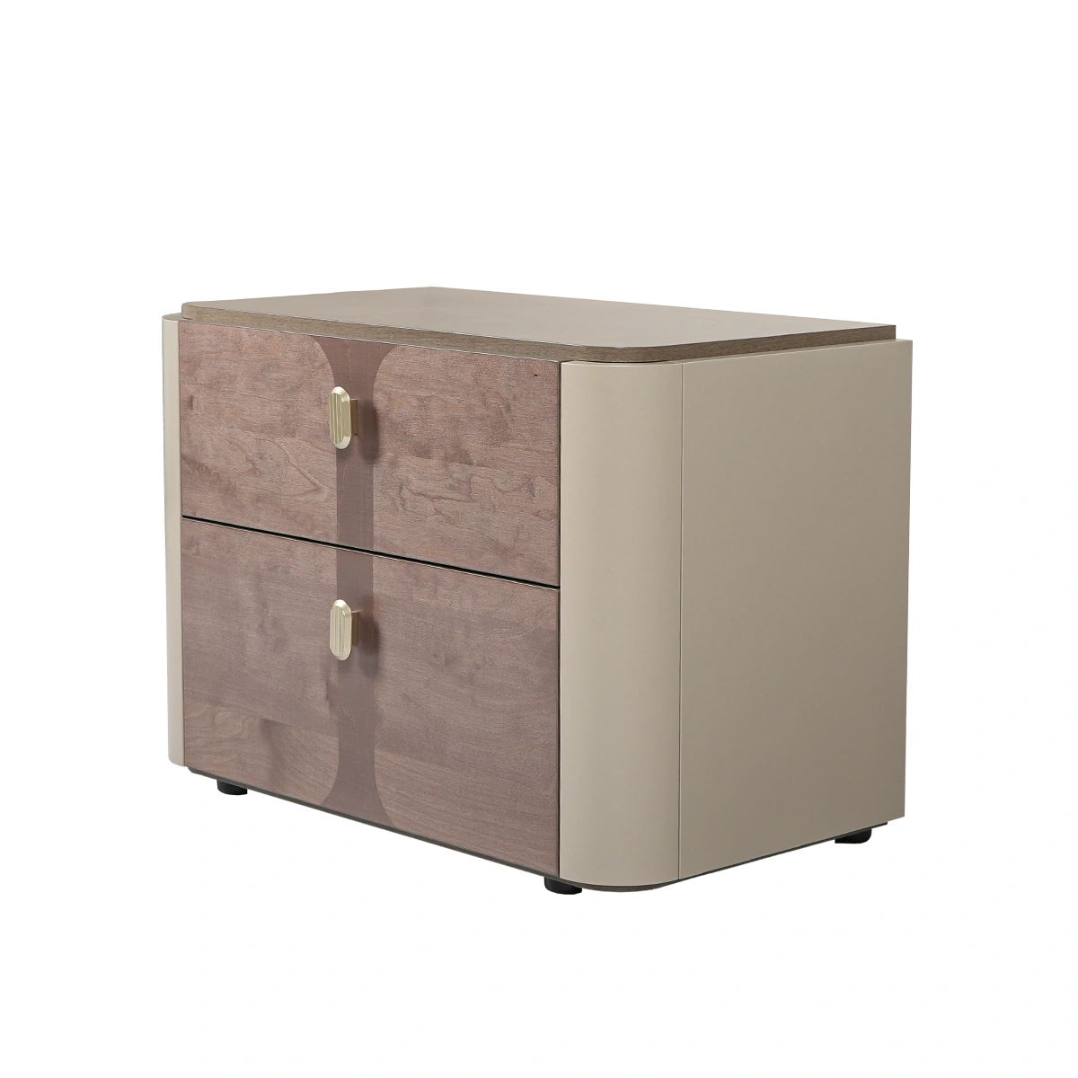 Melamine Saddle Birch Inlay Matt finish: used for inlaid fronts, covers (except the display cabinet), headboard and bed platform, table top, and extensions; Anthracite Alkorcell Paper: Utilized for the interiors of fronts, covers, headboard and bed platform, table top, and extensions; Cream Imitation Leather Melamine: Utilized in the divisions, shelves, side panels, display cabinet cover, bottoms, and back panels of the display cabinet