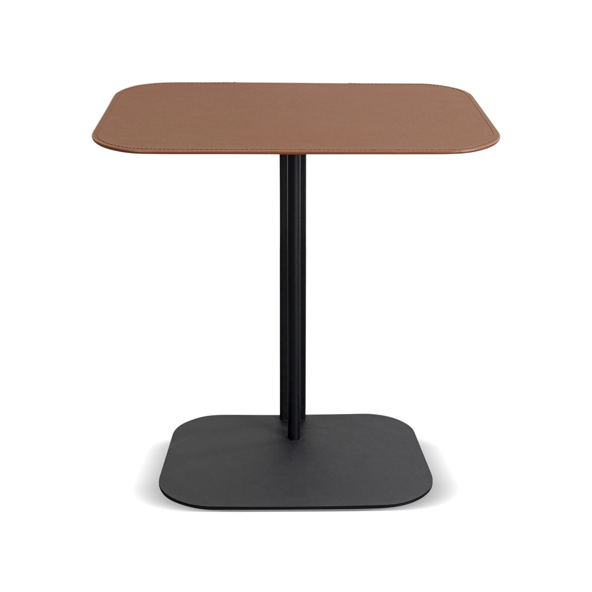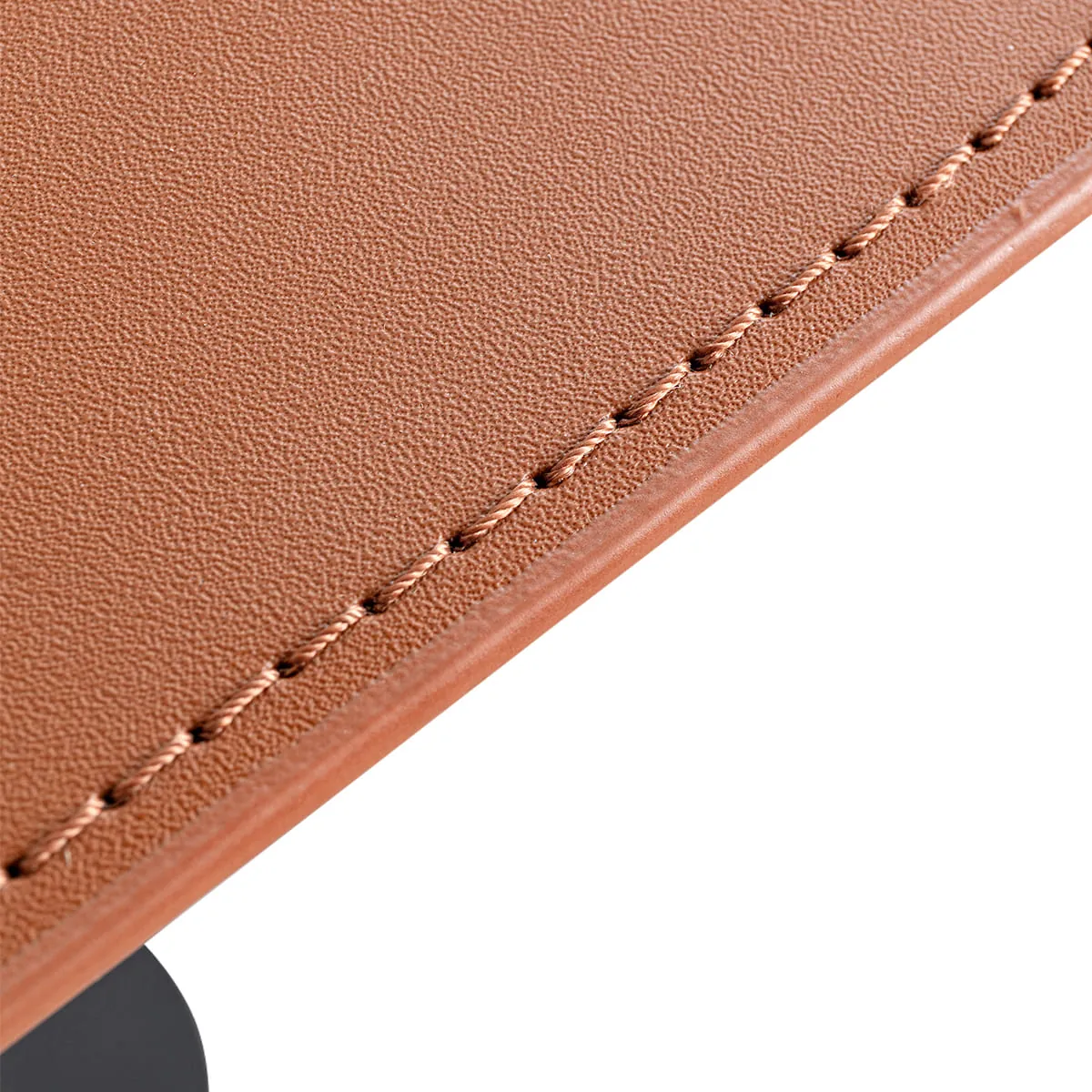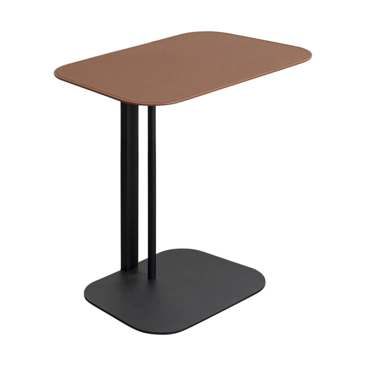 Introducing the Hedi Side Table in orange leather-look textile and powder-coated steel. This modern piece combines luxury and practicality, effortlessly blending into various living concepts.