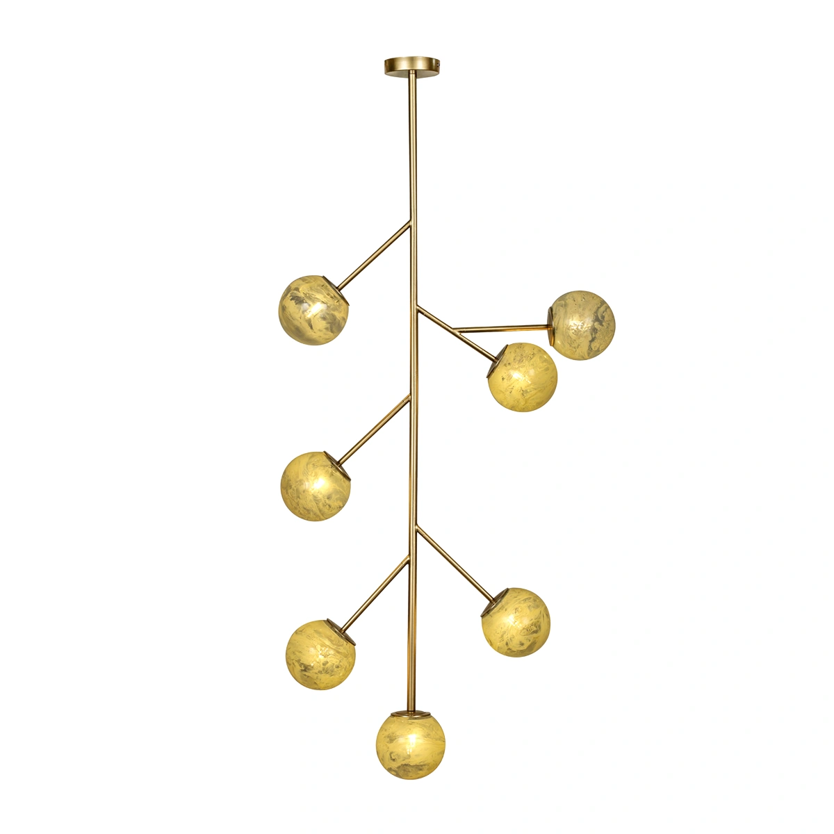 Illuminate your space with the Hestia Hanging Lamp with Seven Branches in Gold, a striking addition to any interior. Its sculptural presence and radiant glow make it a must-have for larger spaces.