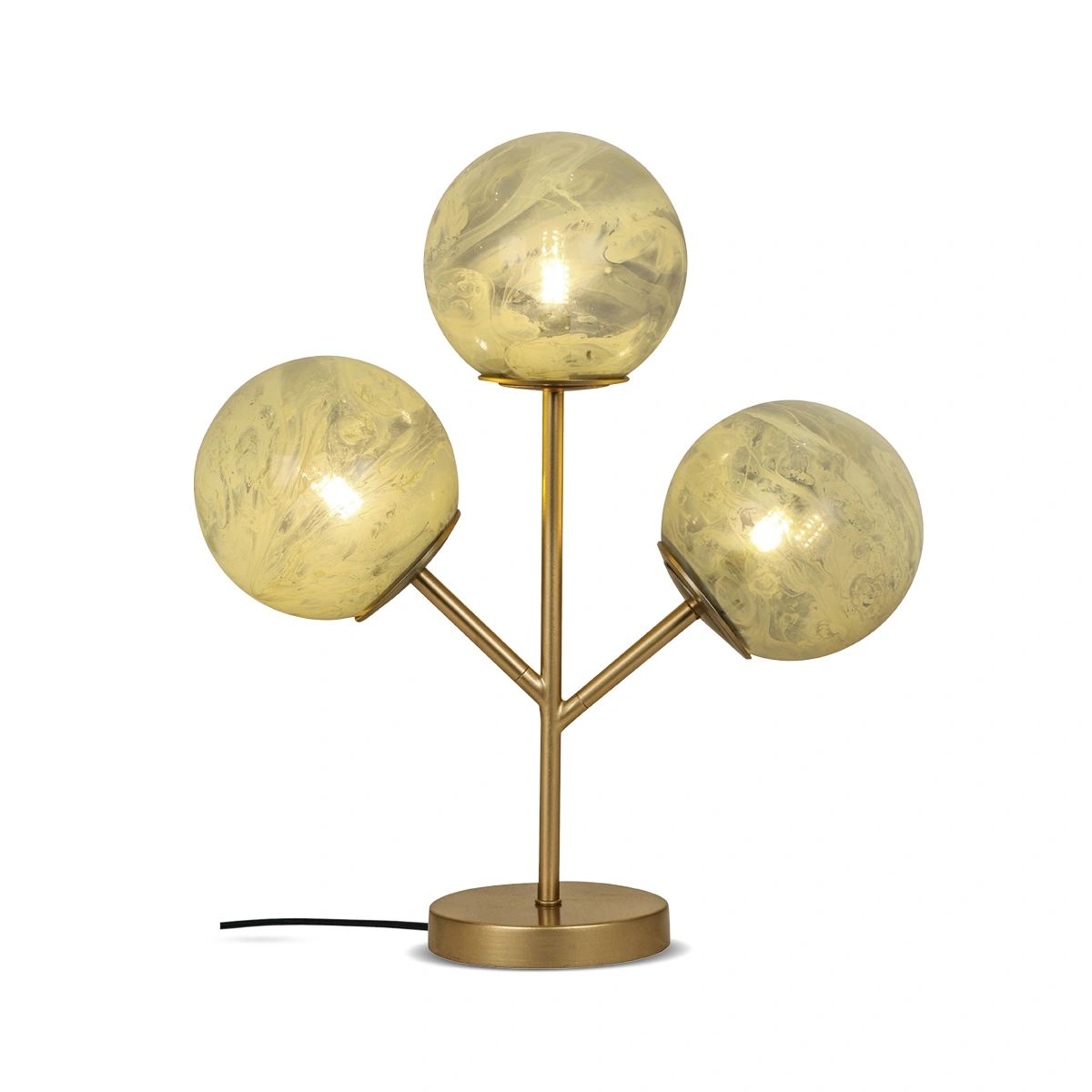 Elevate your home's ambiance with the Gold Hestia Table Lamp with Smoky Glass Shade and Mild Steel Frame. This three-branch lamp creates a striking visual impact and a warm, inviting glow.
