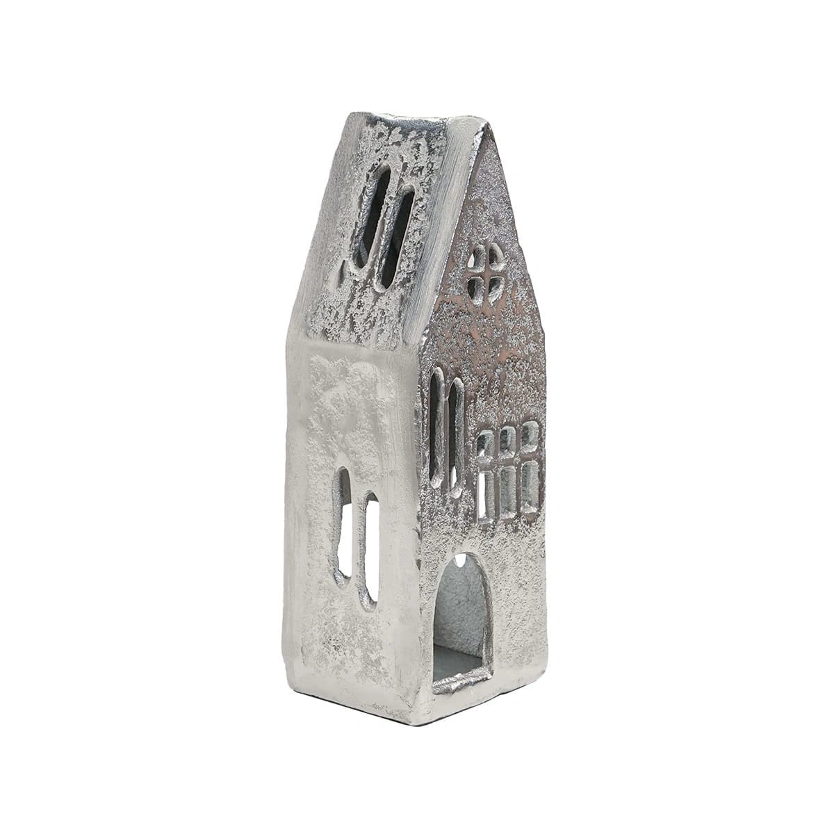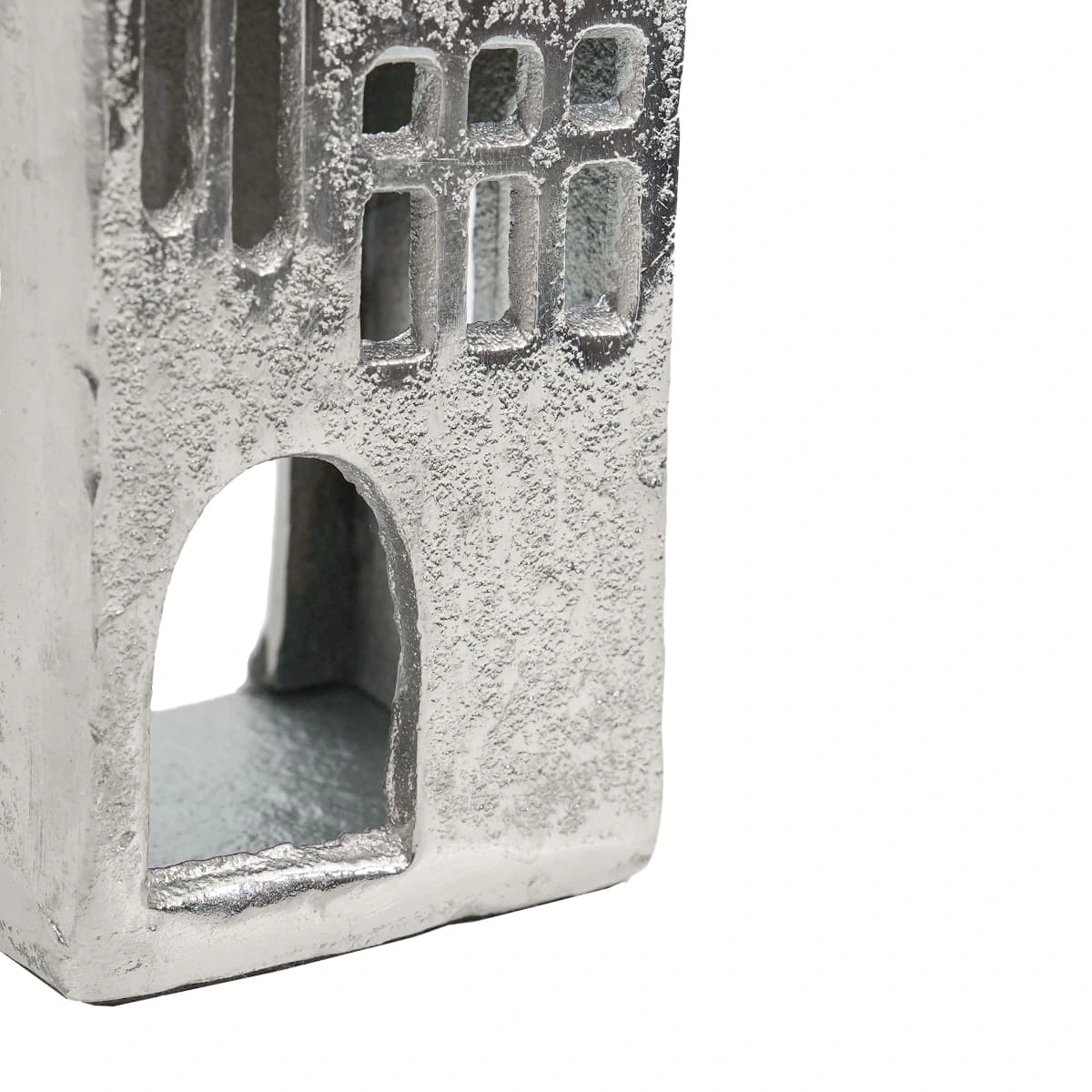 The Large House Cottage Decorative Motif in Silver Aluminium is a delightful addition to any living space. Its graceful form and raw silver finish make it a charming focal point.