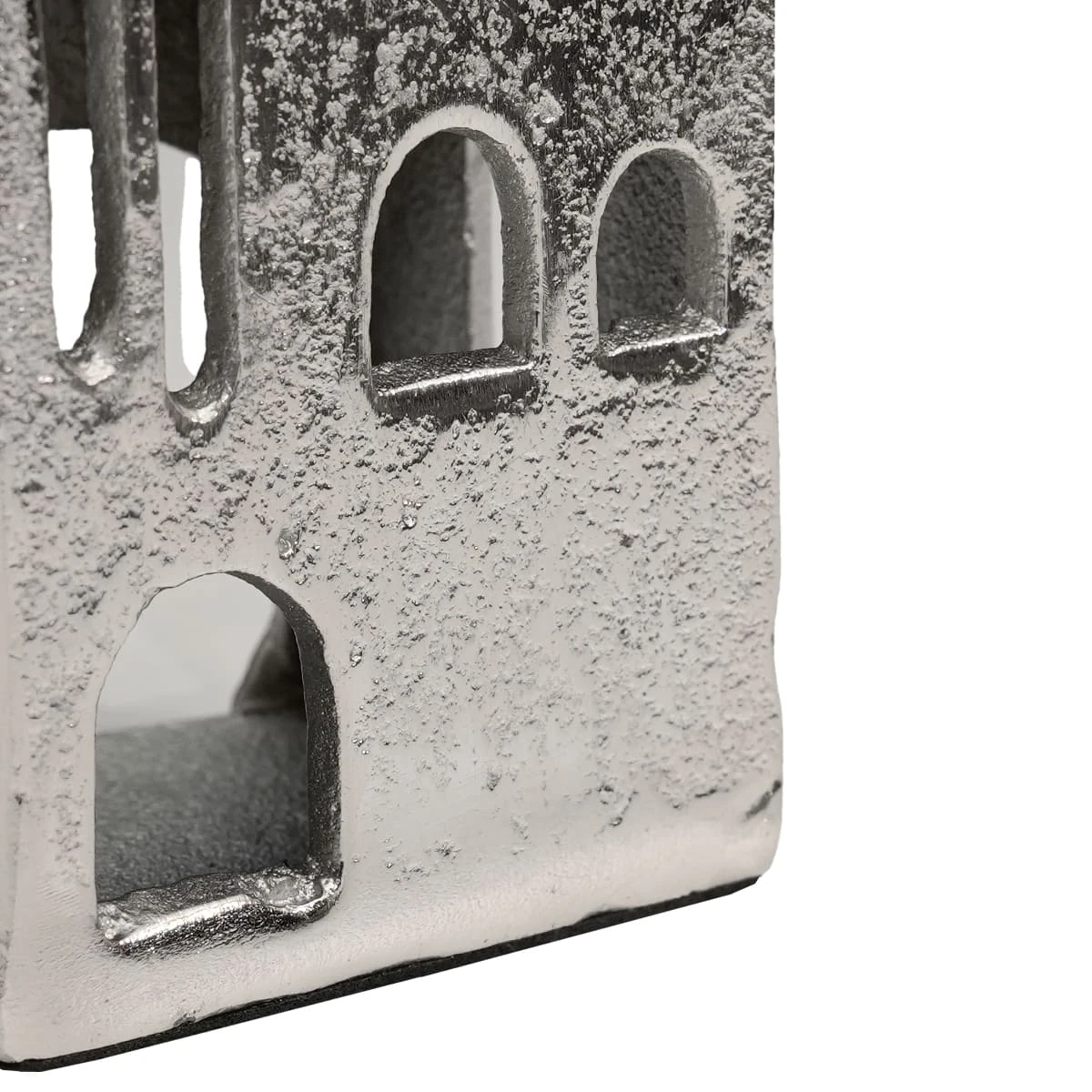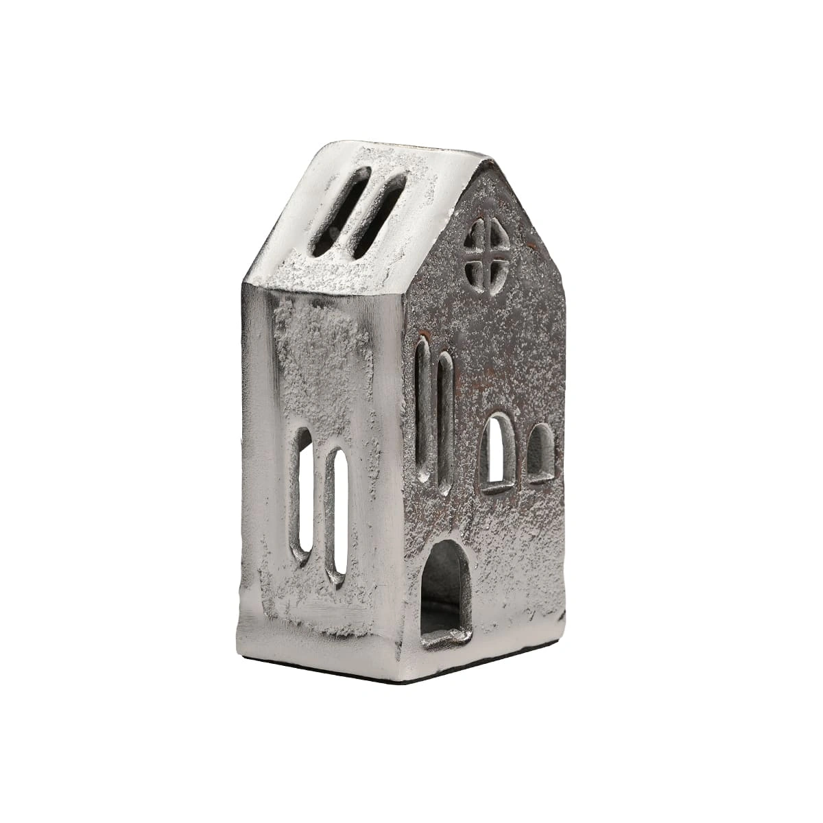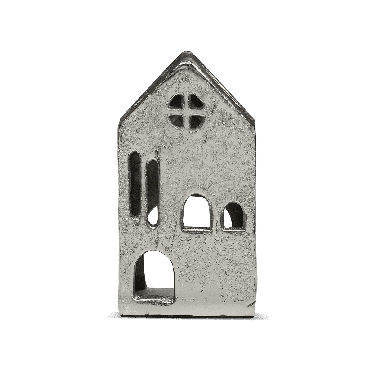 The Small House Cottage Decorative Motif in Silver Aluminium is a charming addition to any cozy interior. With its quaint design, it brings personality and warmth, creating a unique decorative arrangement.