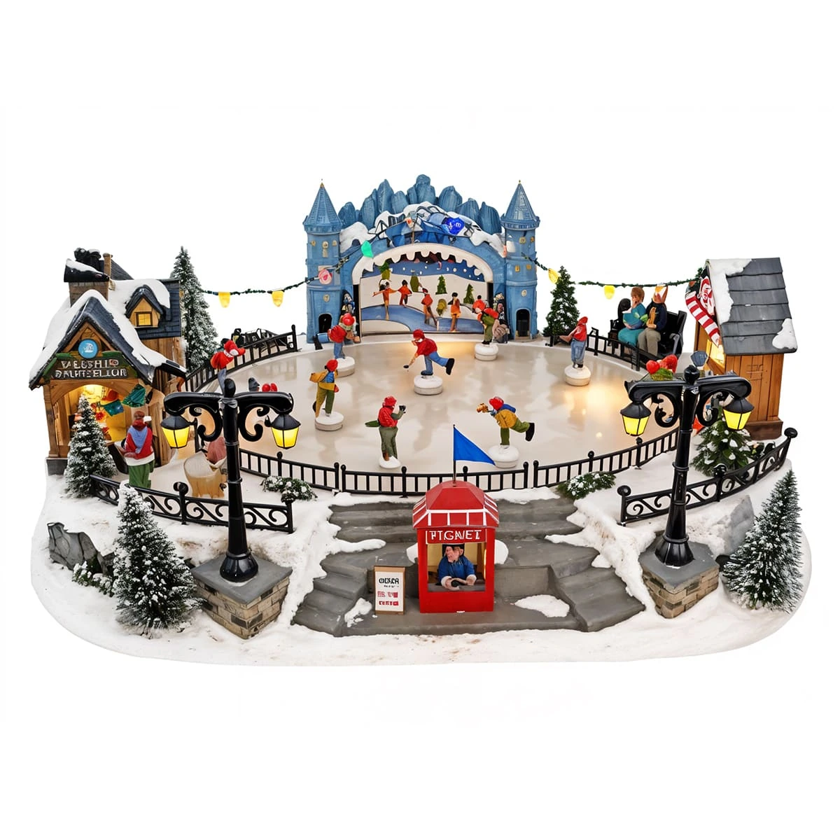 Immerse in the festive spirit with the Large Ice Rink with Music and LED in Multicolor. Crafted from durable polyresin and plastic, this holiday décor item is a delightful combination of visual excitement and enchanting melodies.