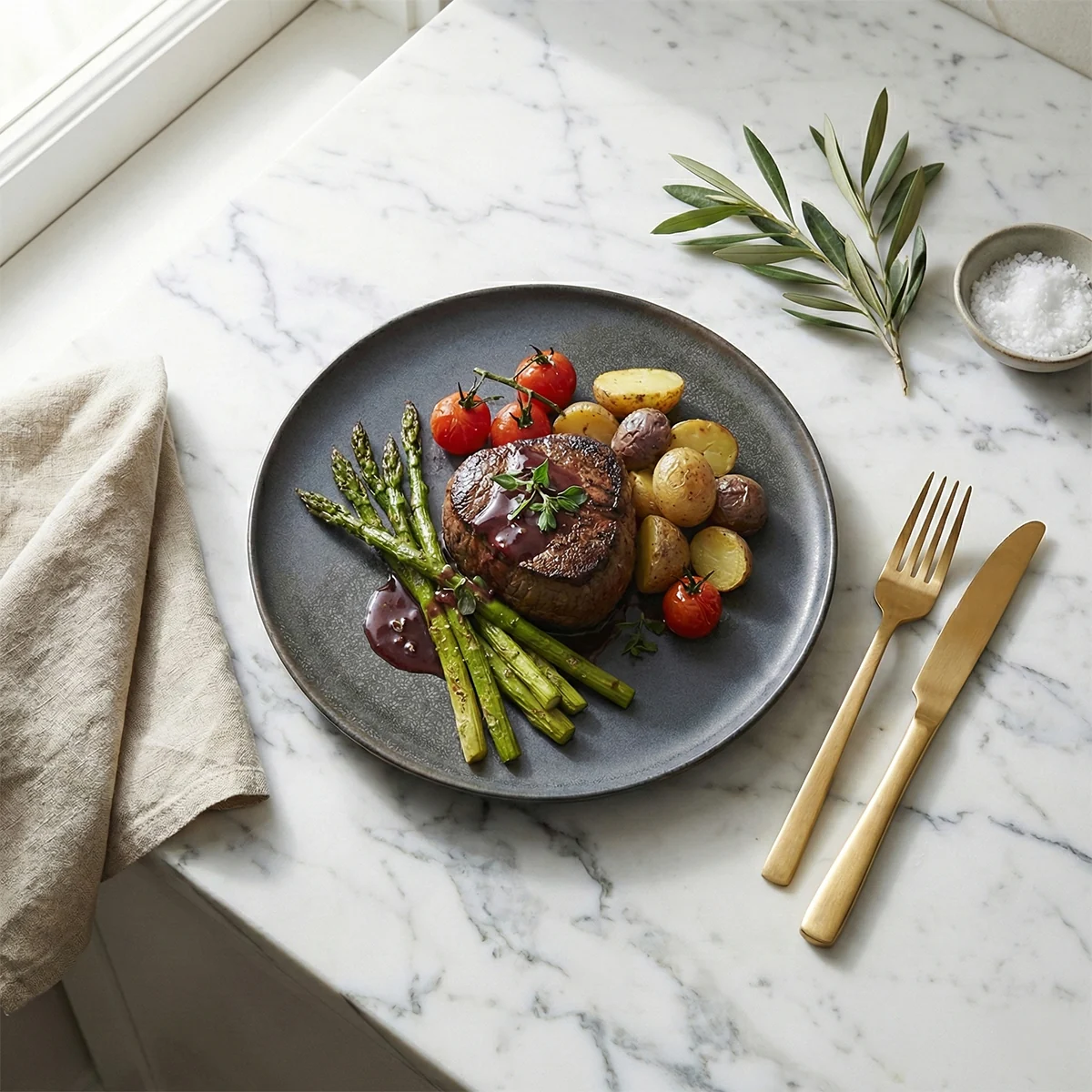 The Iceland Dark Coupe Plate in dark grey offers a larger format for striking modern dining. Perfect for main courses, it combines minimalist form with dramatic color contrast. Crafted from porcelain, it features a smooth glazed surface and a rich dark grey tone. The generous coupe shape supports elegant plating, while the ceramic construction ensures long-term durability. This plate delivers bold style and everyday practicality. Easy to maintain, it enhances modern table settings effortlessly.