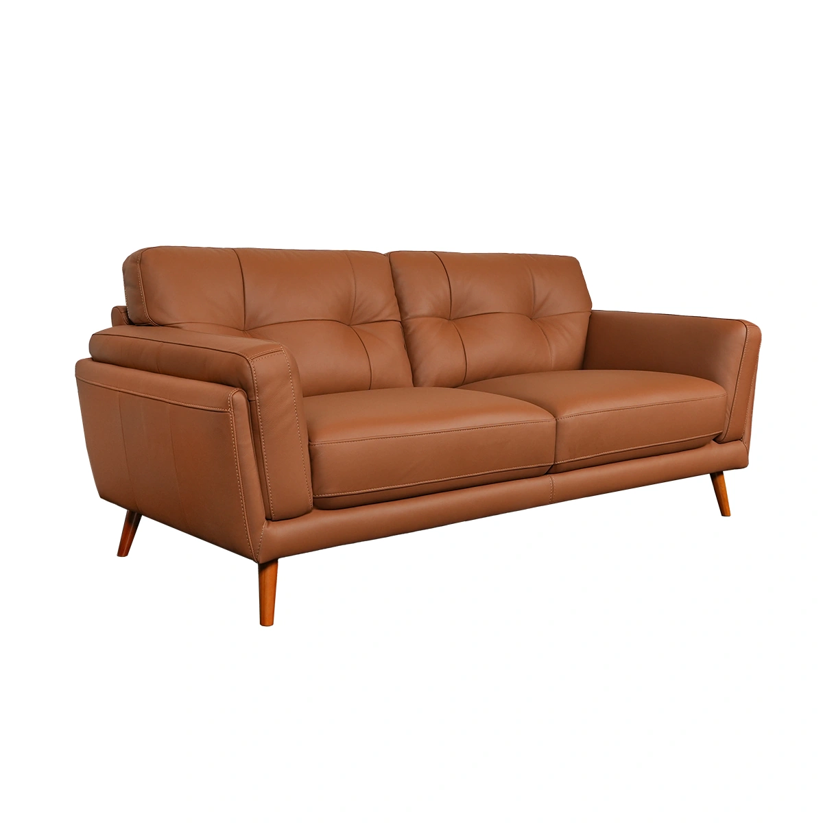 Isamu 2.5 Seater Sofa in brown is a leather sofa created for contemporary homes seeking supportive seating and compact elegance. The corrected grain leather upholstery gives it a refined finish while maintaining everyday durability and comfort.