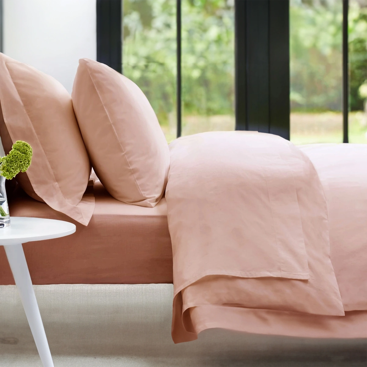 The Organic Cotton bed linen is made of the highest-quality Global Organic Textile Standard (GOTS) certified organic cotton, produced to strict social and environmental standards that work holistically with nature for the long-term benefit of people and the planet. The fabric is a traditional percale plain weave with a one-over, one-under thread pattern, with a 300 thread count for a matt, crisp, and cool medium-weight fabric that feels smooth and soft to the touch.