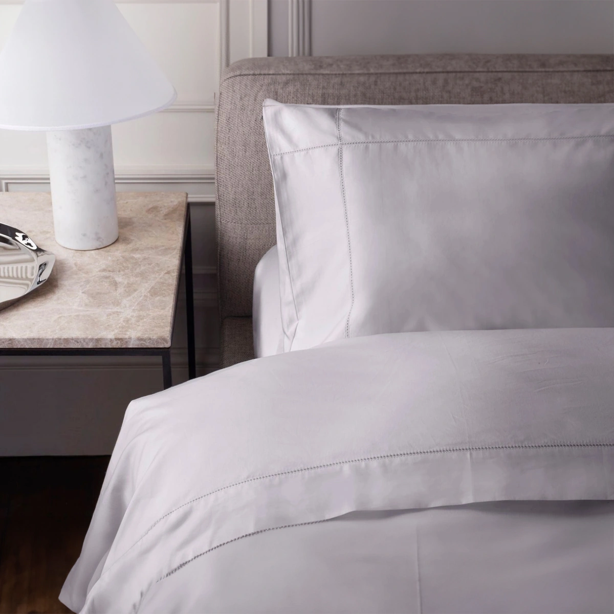 Supima Cotton is made from the world's finest cotton. With its extra length, Supima fibre produces beautifully soft and long-lasting fabrics with a timelessly elegant and supple drape. In this unique 500 Thread Count satin weave, four threads are overlaid on top of one thread to maximize thread visibility.