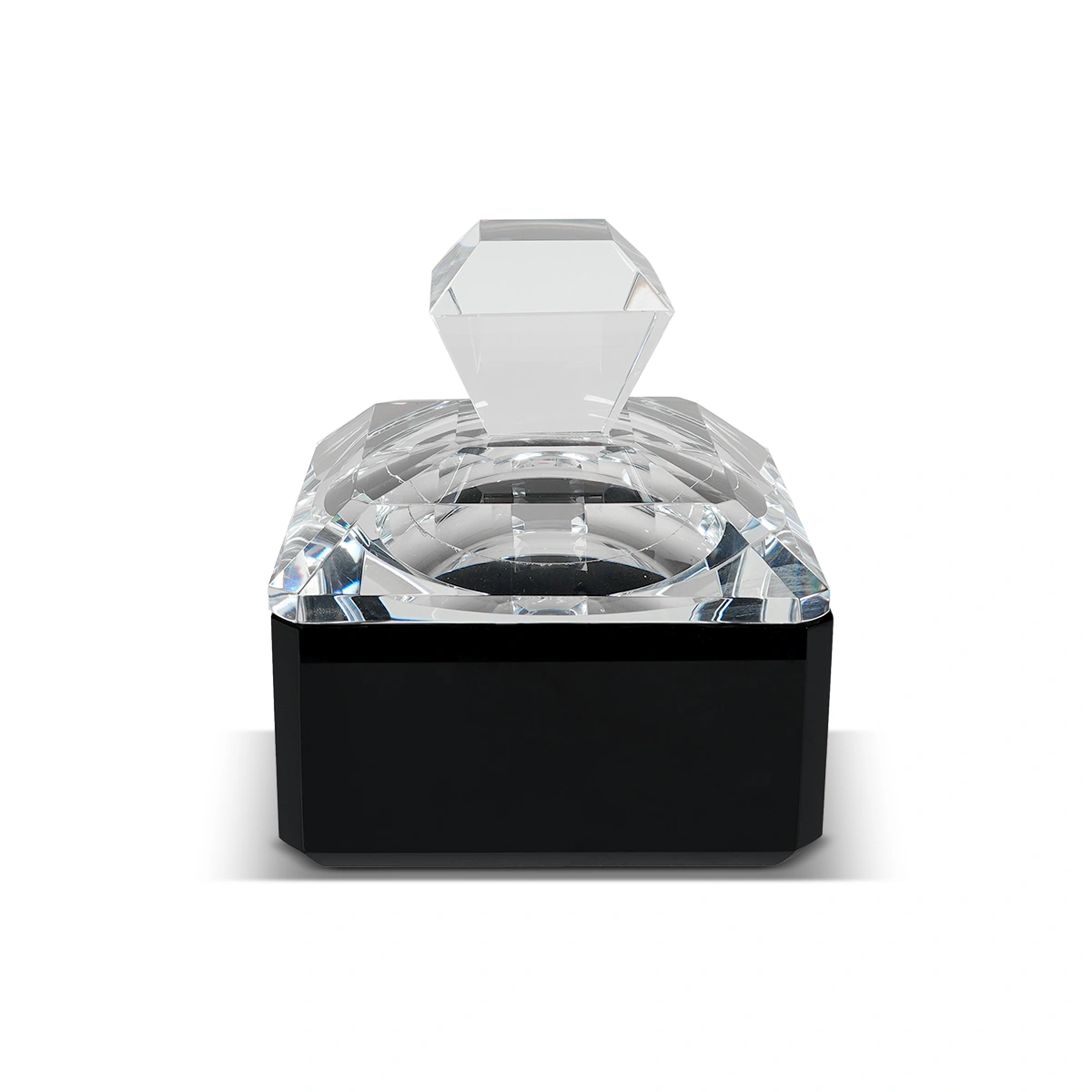 Our Jewel Crystal Box in Black and Clear Glass is the perfect blend of functionality and elegance. This exquisite piece is designed to add a touch of sophistication to any space.