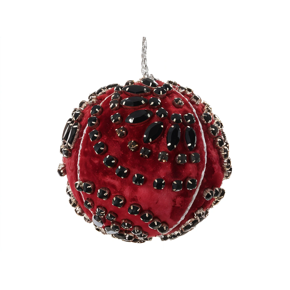 Add a touch of festive opulence to your home with this Medium Red Velvet Ball Ornament with Jewels.