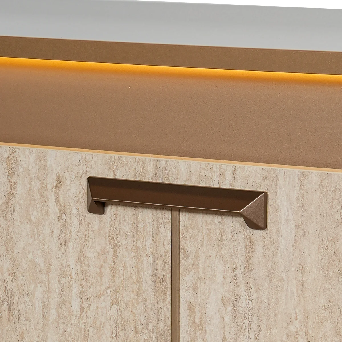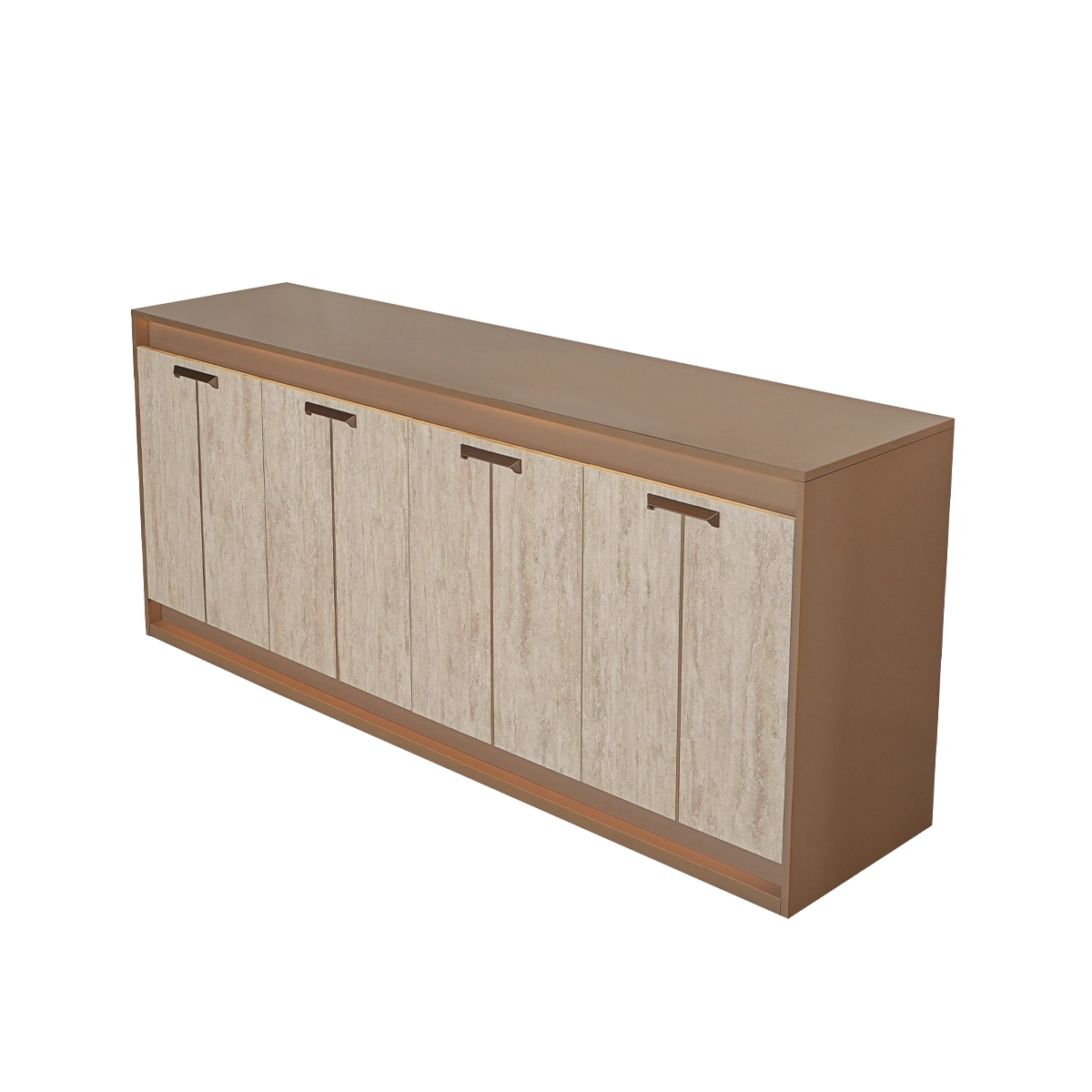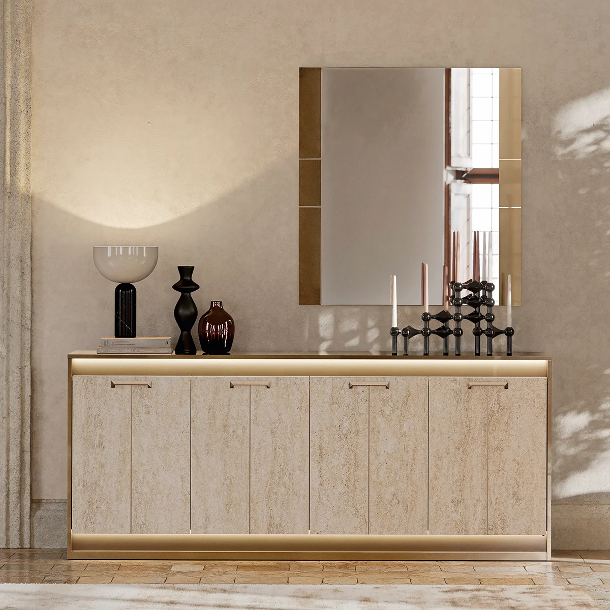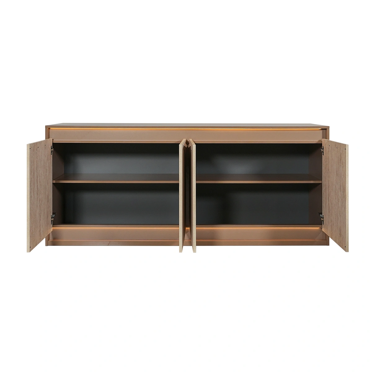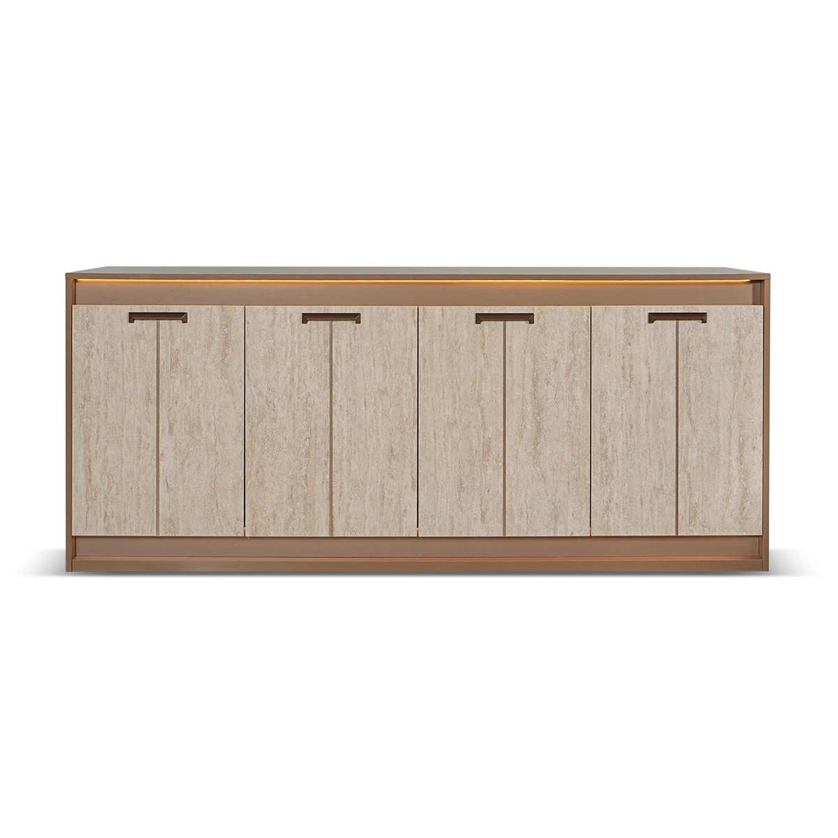 The Jo 4 Door Buffet in Gold High Gloss Travertino Eco Stone is a premium storage solution for contemporary living areas. Its sleek design and integrated lighting bring both function and sophistication to interiors. Built from melamine with a high gloss Travertino Eco Stone finish, the buffet features four doors and integrated lighting for enhanced usability. Its spacious interior supports organized storage needs. This buffet offers practical storage with a luxurious aesthetic. Integrated lighting and durable construction make it a reliable and stylish addition to modern homes.