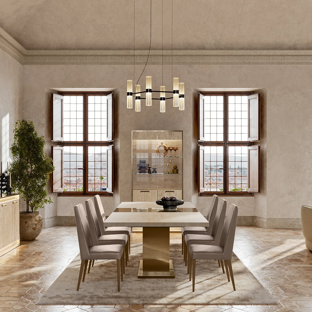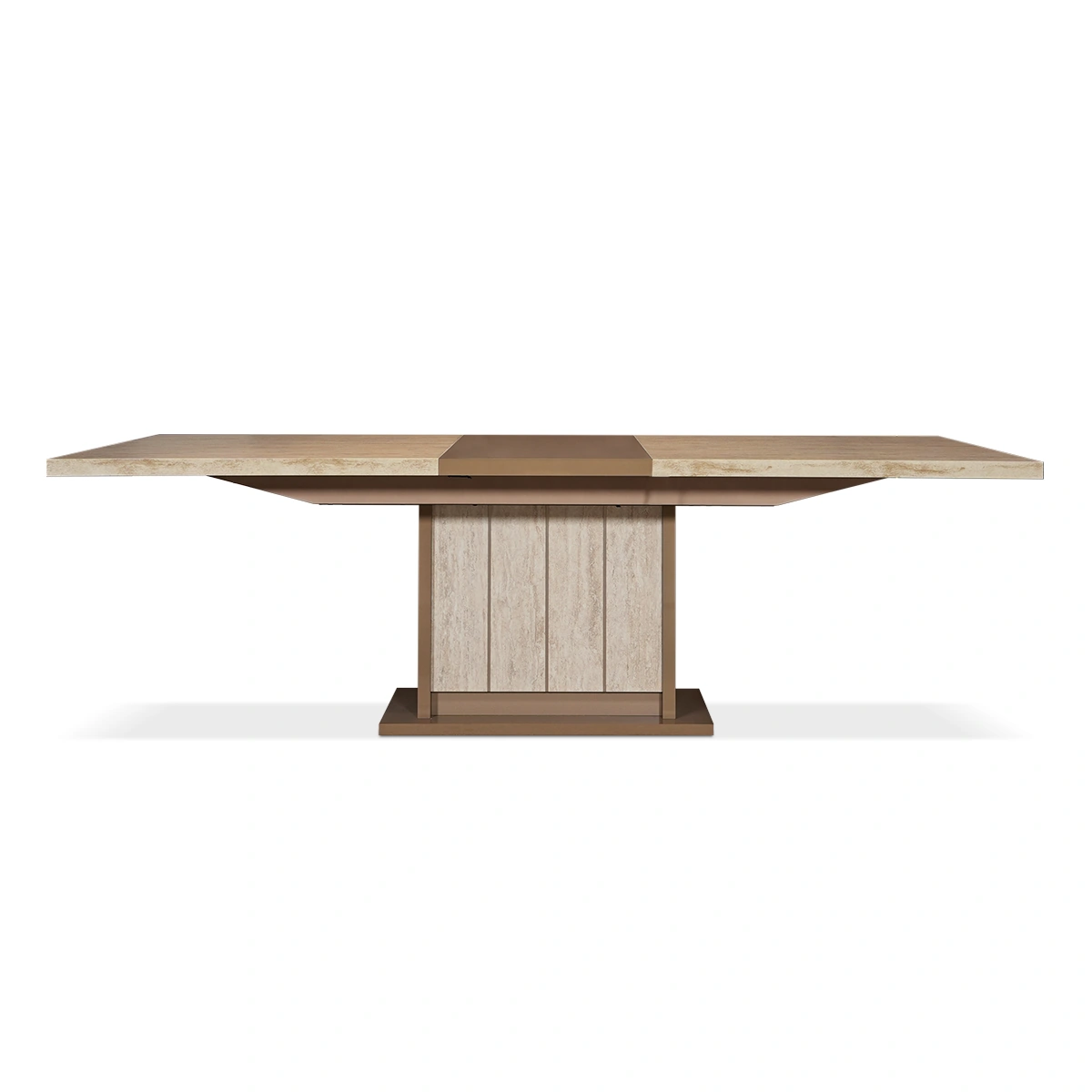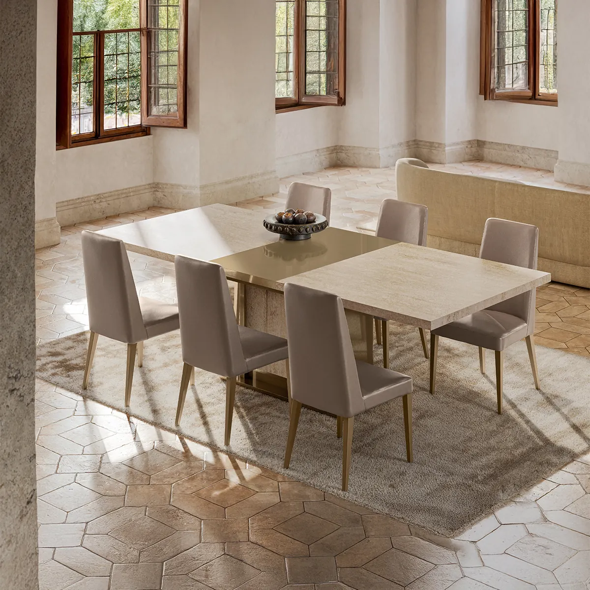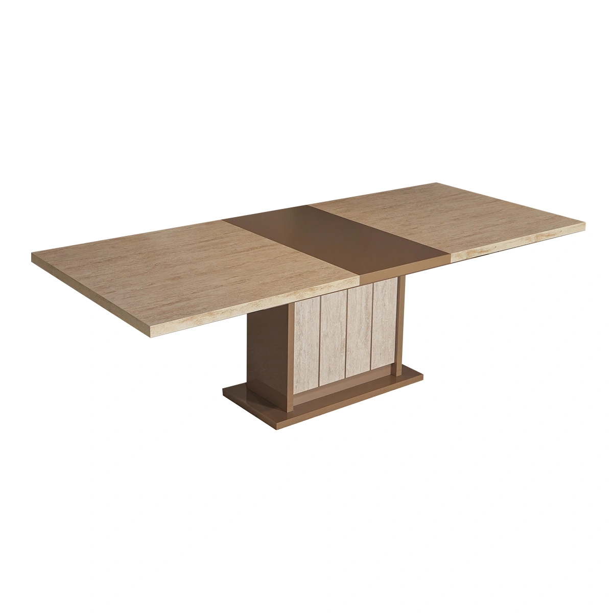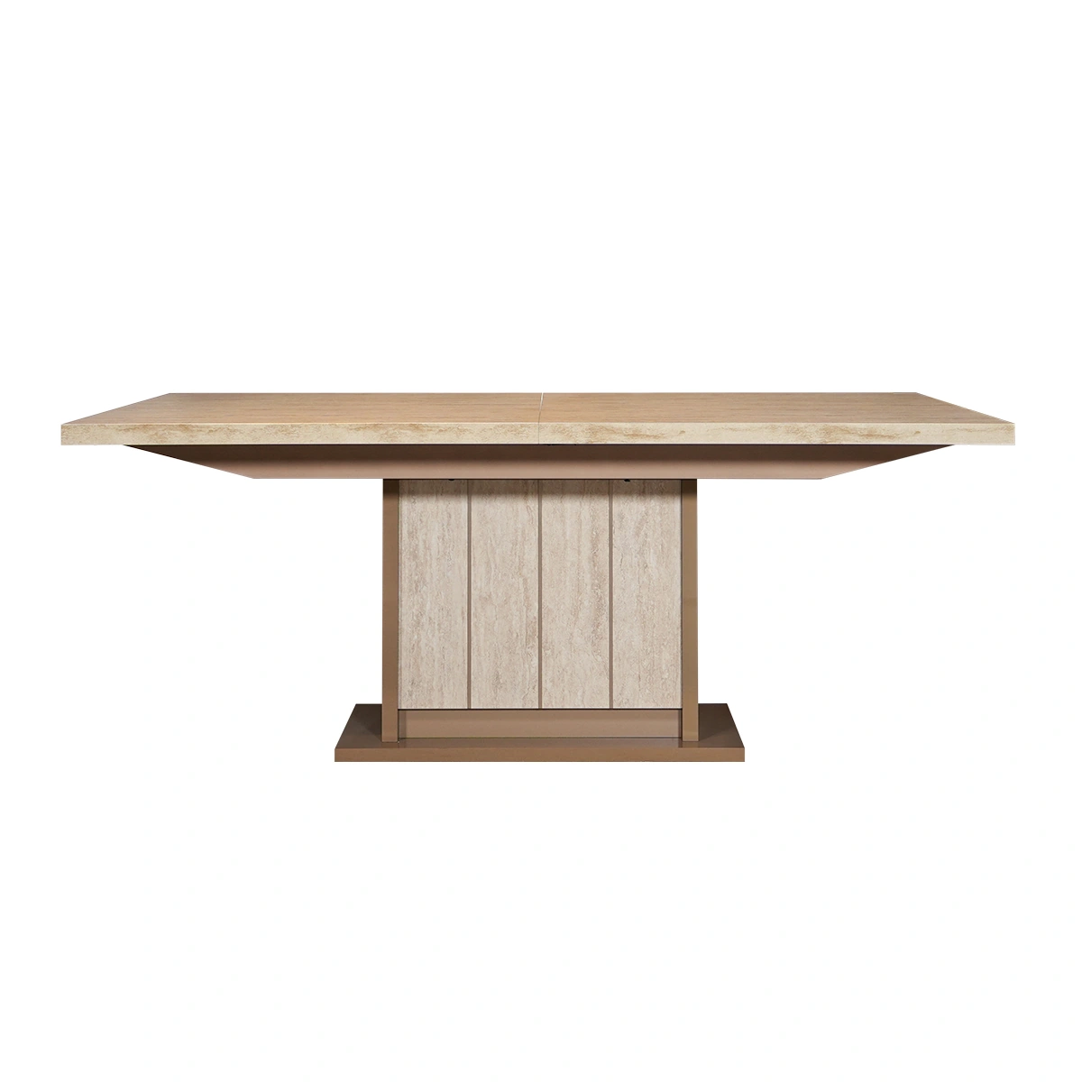 The Jo Dining Table in Gold High Gloss Travertino Eco Stone is a bold centerpiece for modern dining rooms. Designed to impress, it blends refined materials with a clean architectural silhouette. Crafted from melamine with a high gloss Travertino Eco Stone finish, the table offers a spacious surface and stable construction. Its gold-toned finish elevates the dining experience visually. This dining table delivers lasting durability and standout style. Ideal for gatherings and daily meals, it enhances dining spaces with elegance and confidence.