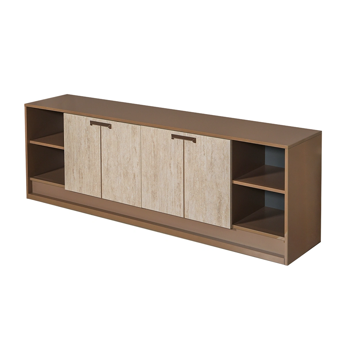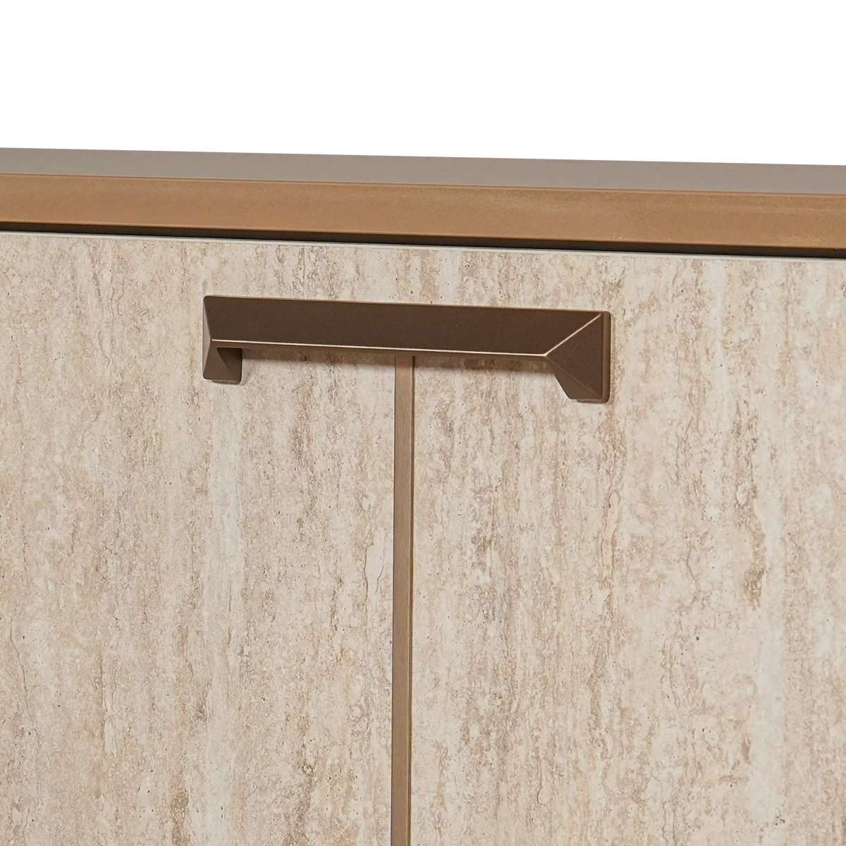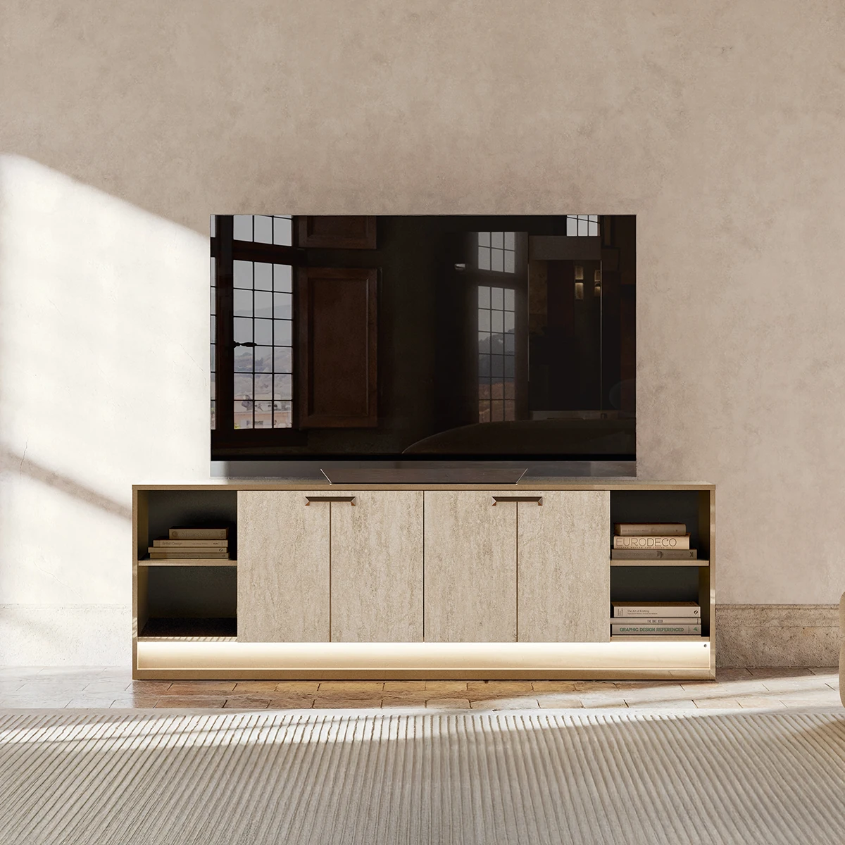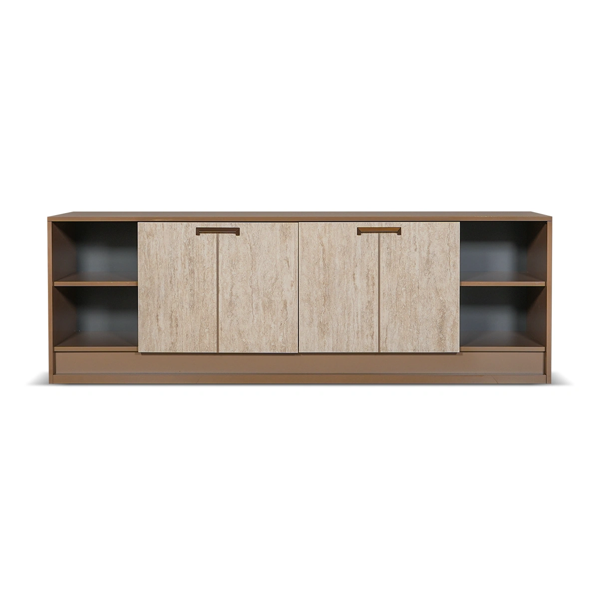The Jo TV Base Structure in Gold High Gloss Travertino Eco Stone is designed for refined entertainment spaces. Its sleek appearance enhances modern living rooms while providing functional media support. Made from melamine with a high gloss Travertino Eco Stone finish, this TV base structure is firebox compatible and built for stability. The polished surface adds a luxurious touch to entertainment setups. This TV base combines elegance and practicality. Firebox compatibility and durable materials make it a smart choice for stylish and functional living environments.