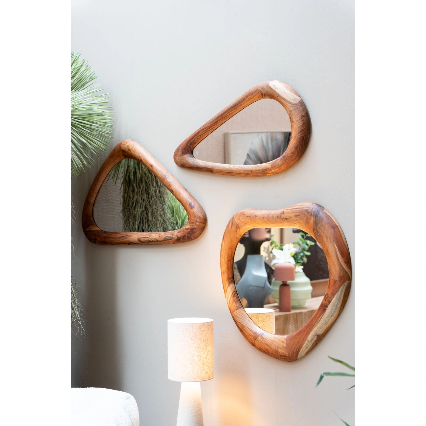 Introducing the Jorge Medium Mirror in brown solid acacia wood - a perfect blend of natural aesthetics and modern flair. Its abstract shape and solid wood frame create a unique design statement, bringing character to your home.