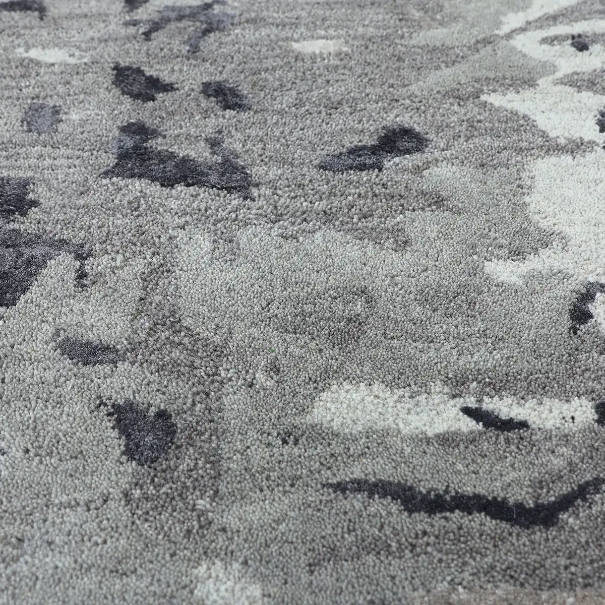 JP-003 Carpet in grey multicolor is a hand tufted wool viscose carpet suited for larger modern spaces. Featuring 70% wool and 30% viscose pile, it provides durability and comfort. Dimensions: L 250 cm, W 350 cm.