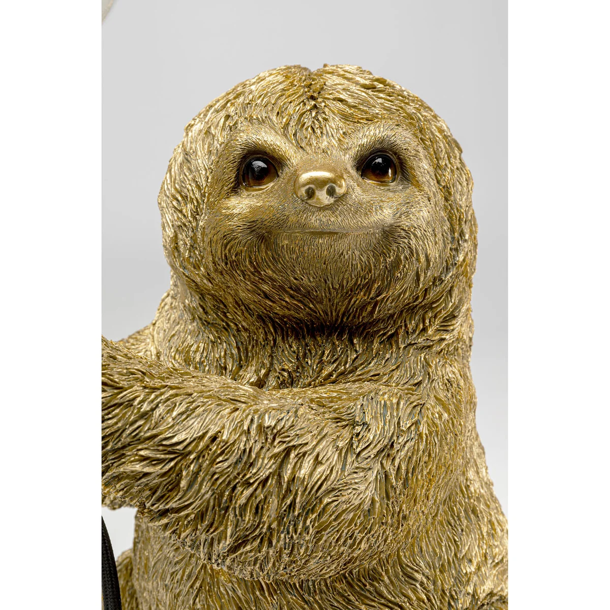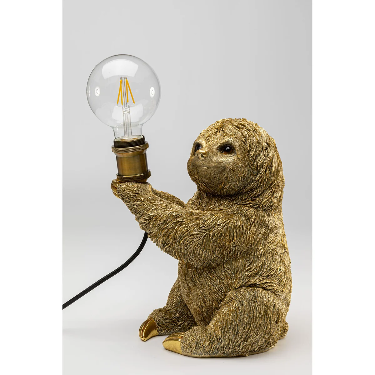 Standing at 30 cm tall and measuring 20 cm by 25 cm, this lamp features a handcrafted mini sloth with lifelike details. It's not just about aesthetics, the lamp also boasts a practical cable length of 200 cm for flexible positioning. This unique table lamp is finished in a vibrant multicolor, with a gold-colored frame that lends a touch of elegance.