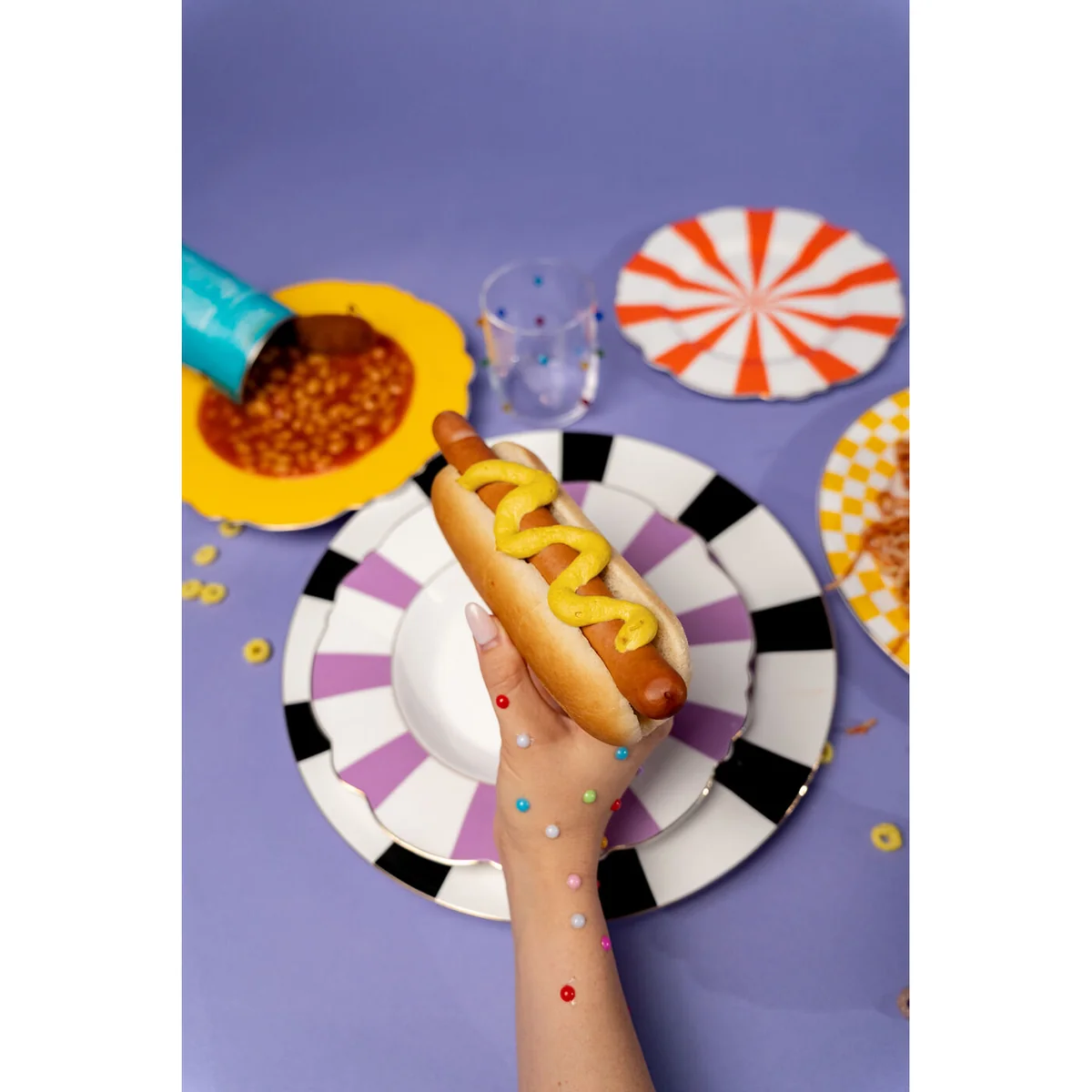 Introducing the Harlequin Large Plate, a delightful blend of retro design and modern chic in purple Fine Bone China Porcelain. This handcrafted porcelain piece is perfect for adding a vibrant touch to any dining experience.
