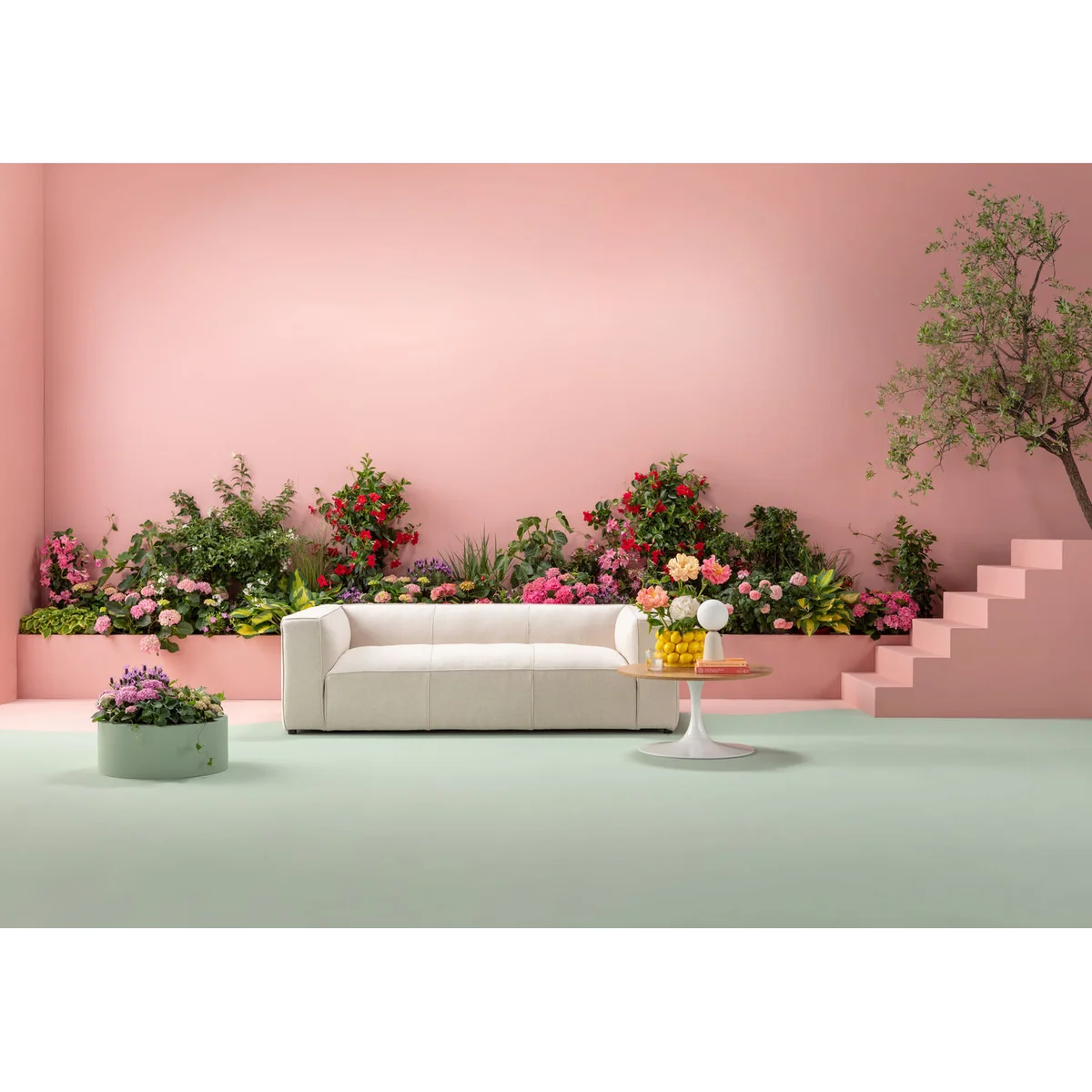 Unveiling the Cubetto 3-Seater Sofa in cream chenille, a perfect addition to any contemporary living space.