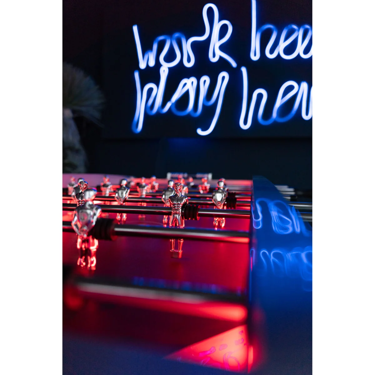 Whether you're hosting friends, entertaining family, or adding a fun element to your workspace, this Foosball table provides nonstop excitement. Its durable build withstands years of active play, and its modern silver design elevates your room's aesthetic. Enjoy a perfect balance of style, function, and entertainment with this impressive game table.