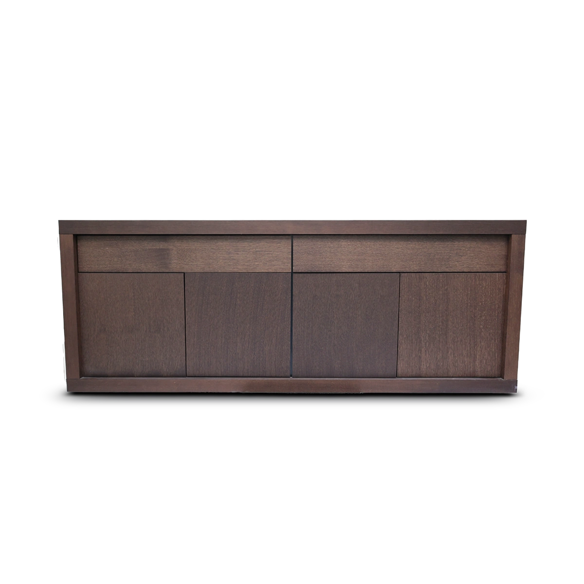 This sideboard features a spacious structure measuring L 245 cm by D 45 cm and standing at H 93 cm. It comes with 4 doors and 2 drawers, providing ample storage for various household items. The chipboard structure ensures long-lasting durability while the chocolate finish adds a touch of elegance.