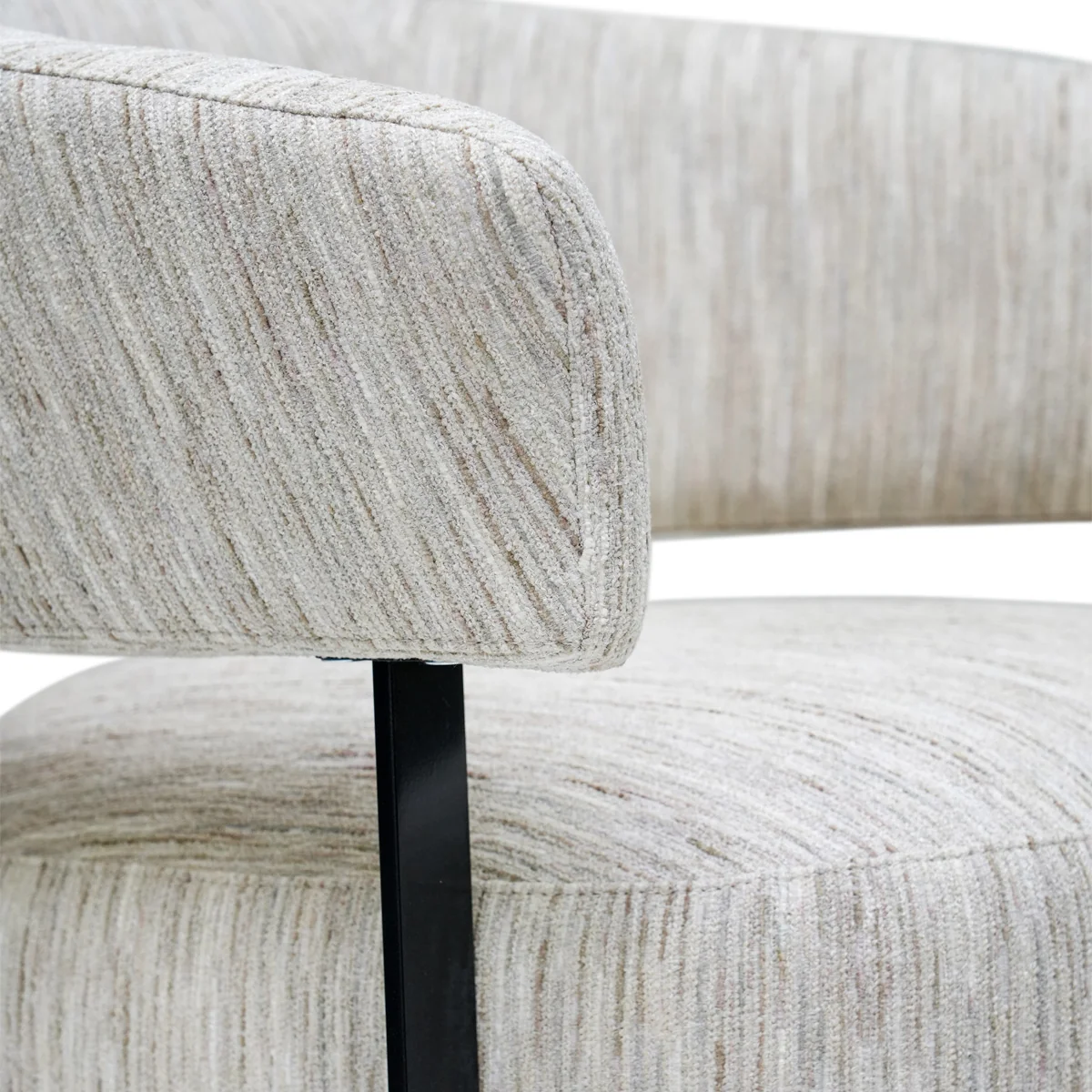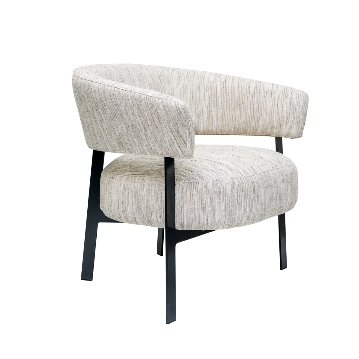Meet the Kelly Armchair in beige mantilla fabric, a charming addition to any room with its comfortable build and elegant design.