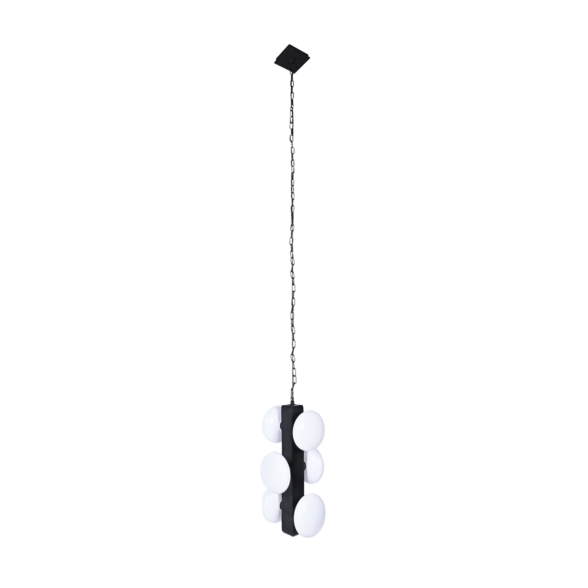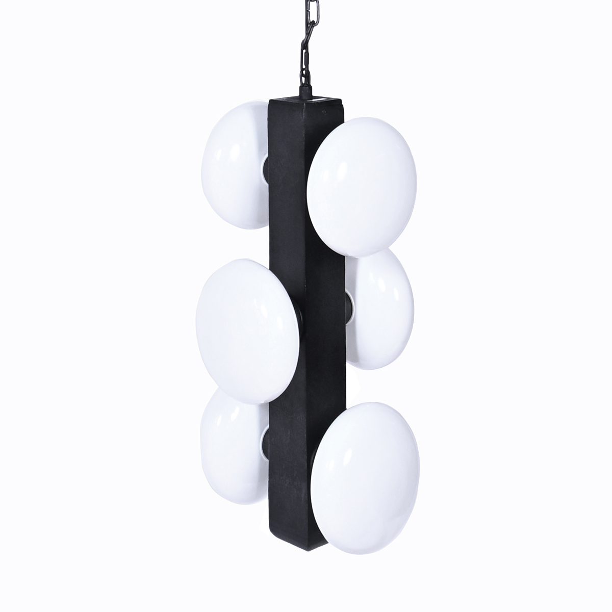 Kiku Chandelier in Textured Graphite brings artistic balance to contemporary interiors. Its frosted shades diffuse light beautifully, making it perfect for dining rooms or bedrooms that seek a calm, ambient glow.