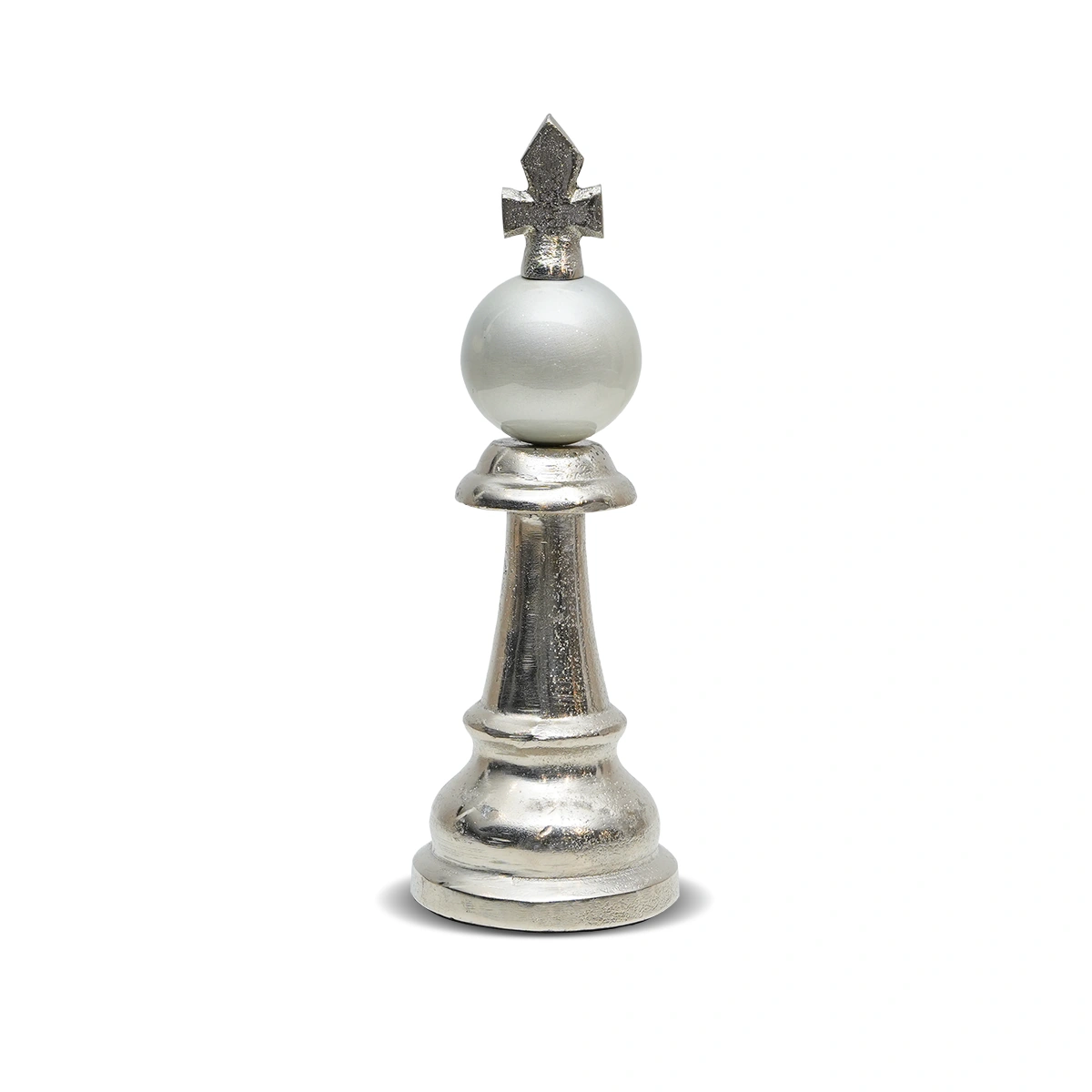 King Chess Figurine with White Ball in Raw Silver elevates any space with its stately design. Ideal for office shelves, consoles, or study nooks, it combines modern artistry with timeless inspiration.