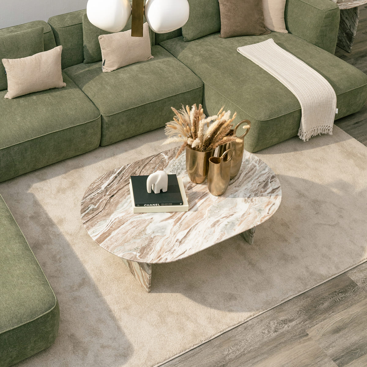 Kyoto Marble Coffee Table in Toronto Brown adds warmth and depth to any living room. Its smooth surface provides the perfect stage for decorative pieces or everyday essentials, balancing practicality with style.