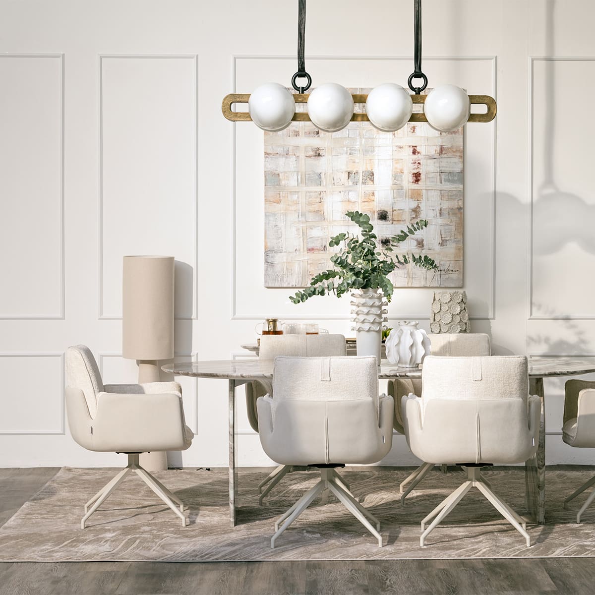 Kyoto Dining Table in Oslo Marble Brown anchors the dining space with warmth and natural beauty. Its smooth finish and substantial form make it perfect for shared meals and meaningful gatherings.