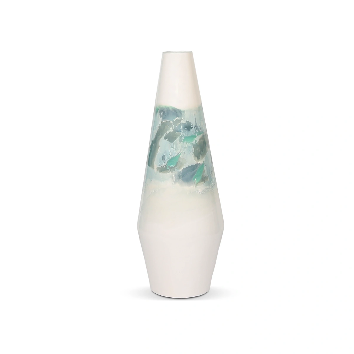 Standing at 50 cm tall with a 13 cm diameter, this iron vase exhibits a striking multicolor design. Crafted from iron for long-lasting durability, it showcases an eye-catching pattern that gives it a unique look.
