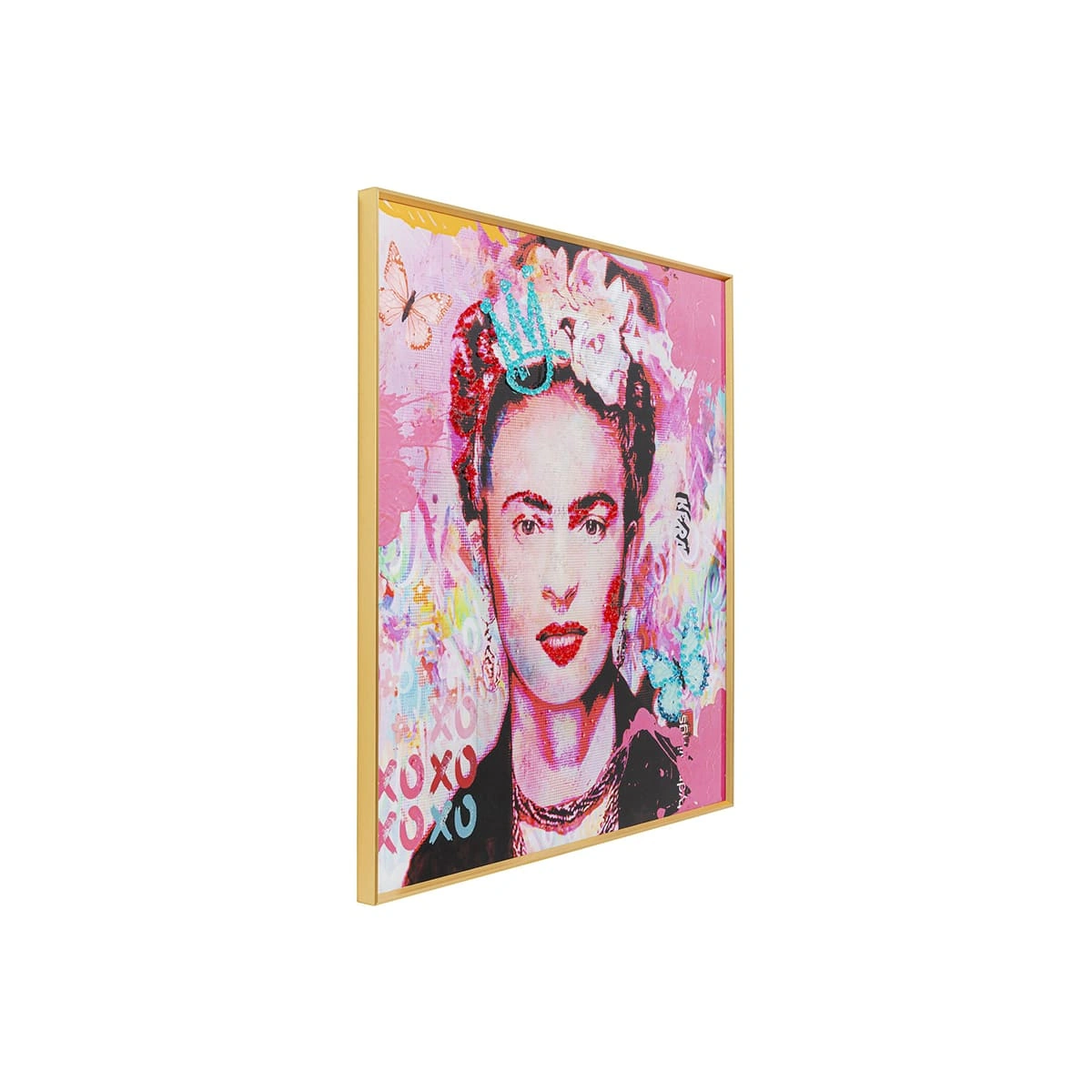 Key features of this piece include its dimensions of 100 x 100 x 3.6 cm, a vibrant woman motif in rich pink hues, and a narrow gold frame. The glittering rhinestone appliqués add a touch of glamour to this art piece, making it an irresistible focal point in any room. It's crafted from art paper, with a front made from toughened safety glass and a back panel made of untreated MDF.
