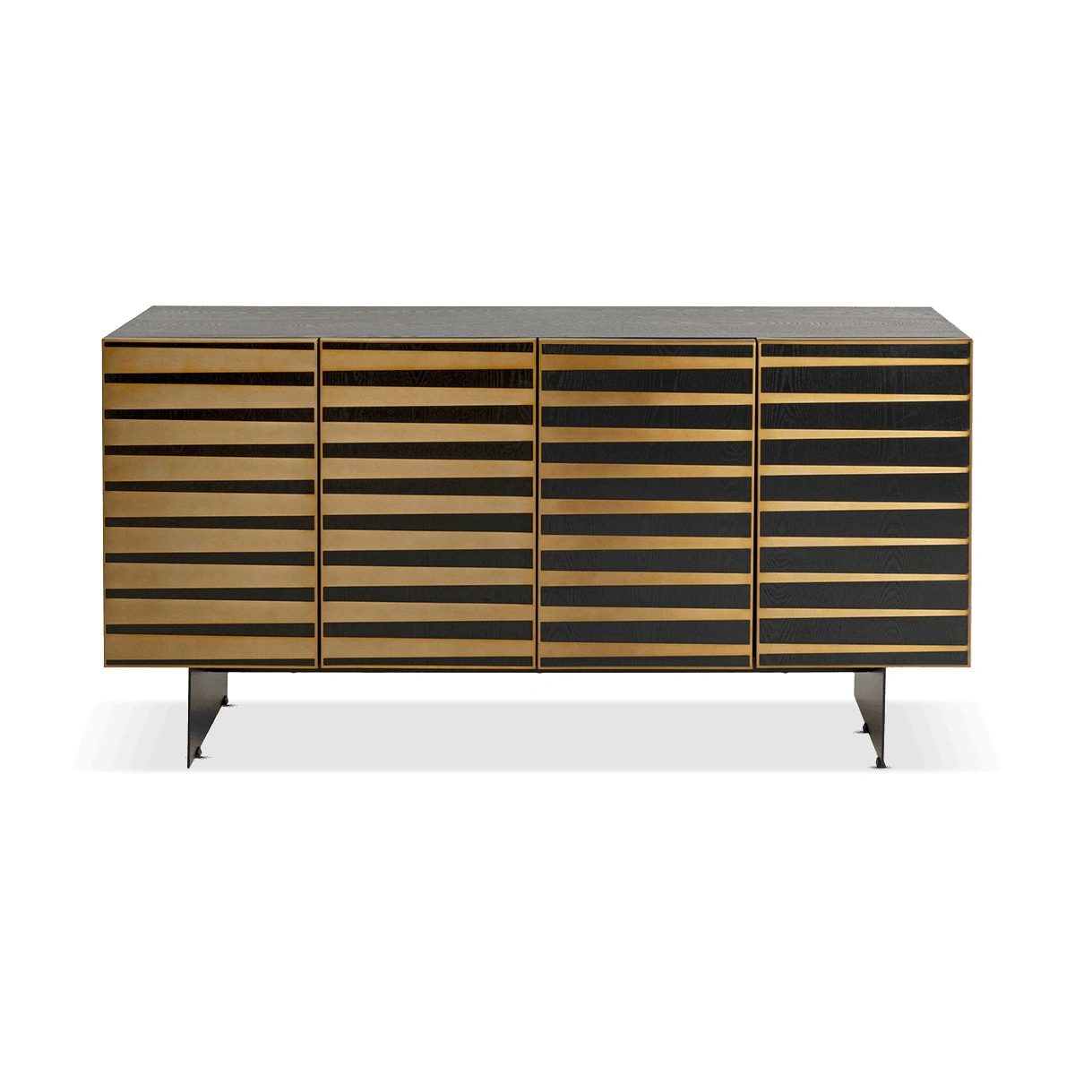 • Geometric front details made of stainless steel make this sideboard a visual highlight