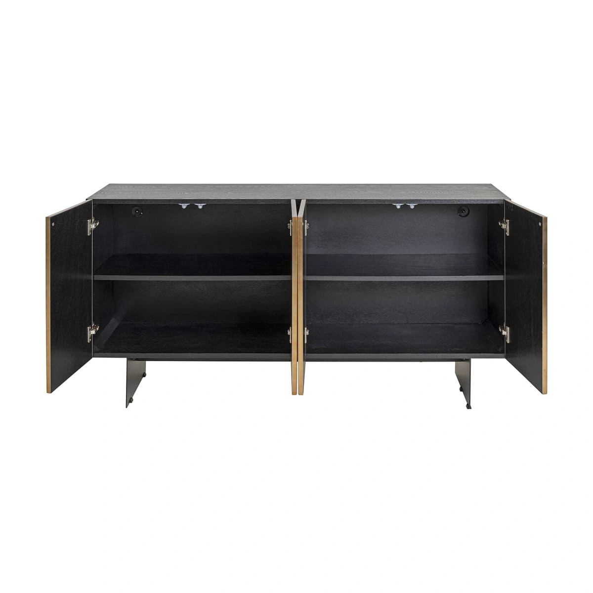 • Elegant sideboard made of wood in black with gold details, 83 x 160 x 45 centimeters (H/W/D)