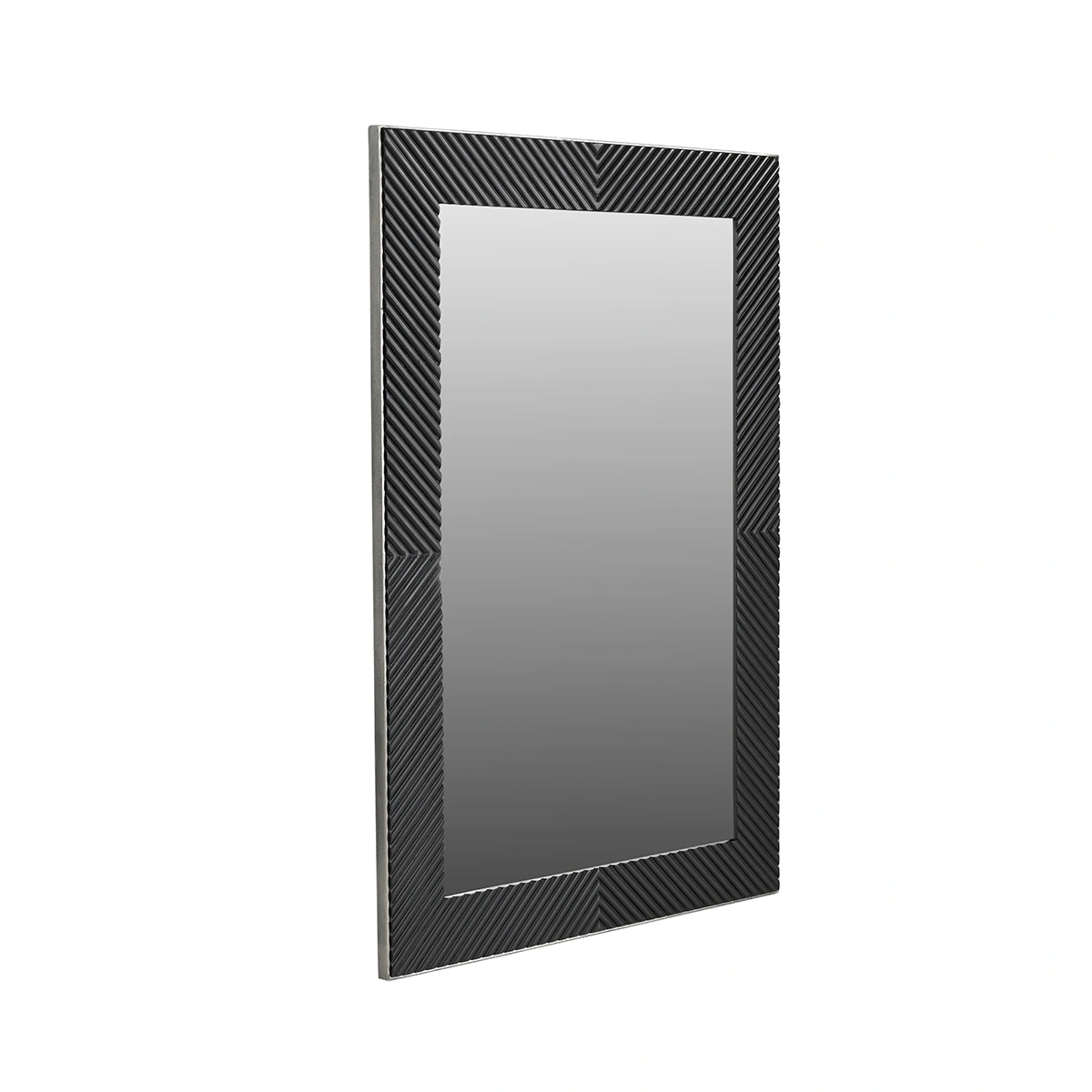 Featuring a hand-forged chrome metal frame, the mirror is supported by a mango wood back panel and reinforced with plywood for stability. Its vertical proportions make it ideal for full reflection while maintaining a sleek, minimal aesthetic.