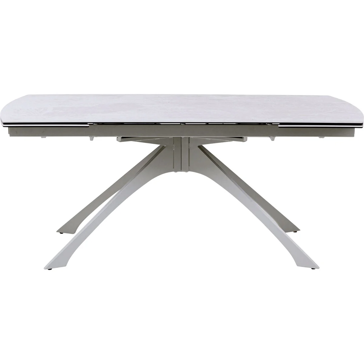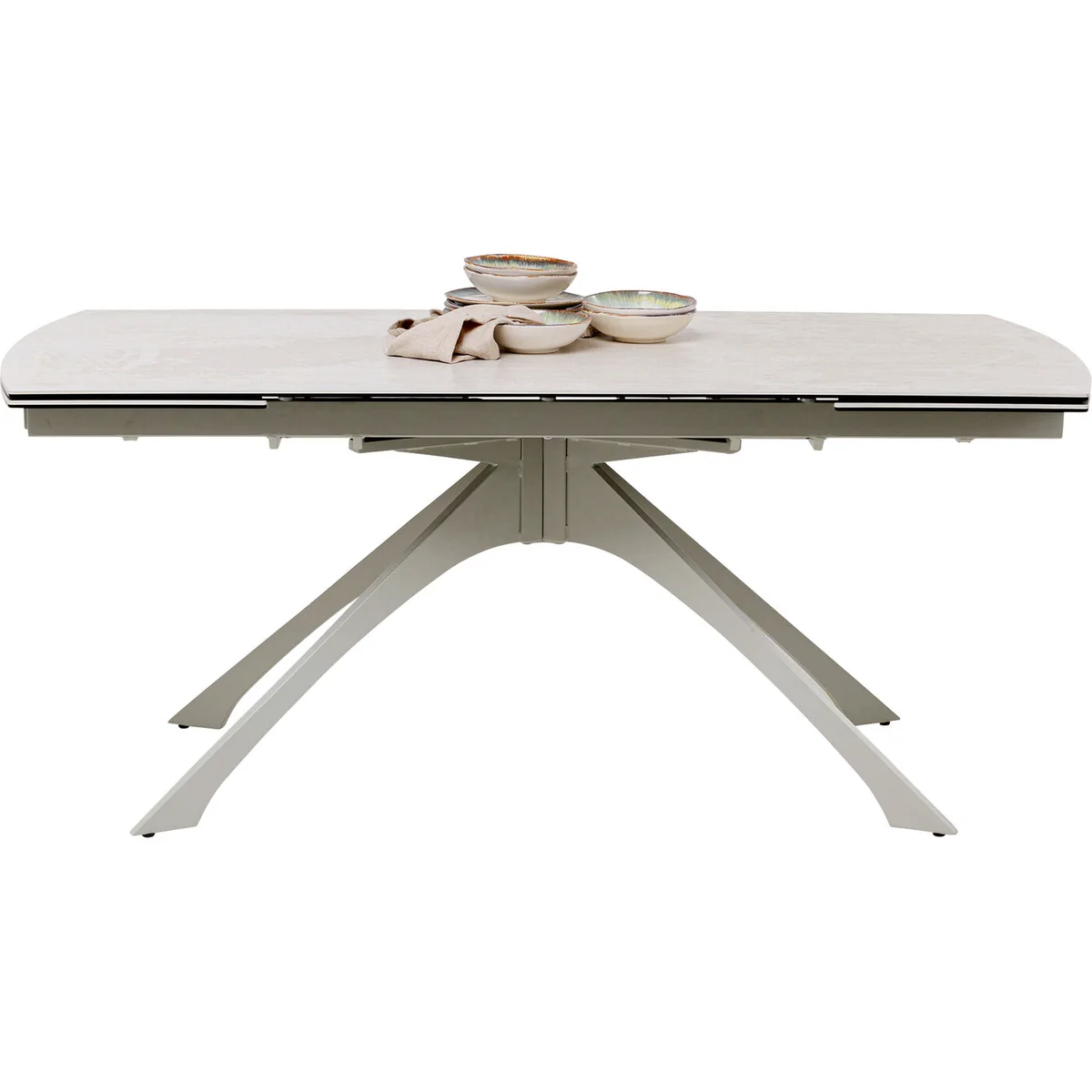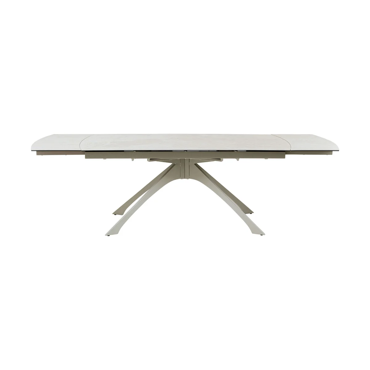 • Modern extendable table in greige with white table top in stone look, 76 x 180 x 90 centimeters (H/W/D) • High-quality finish with a ceramic table top and a powder-coated steel frame • The easy-care table top impresses with its natural pattern and soft tones • The fine frame in stylish greige gives this table a sculptural, modern design • The fold-out dining table can be extended from 180 to 260 cm in no time at all - perfect for social gatherings and family parties