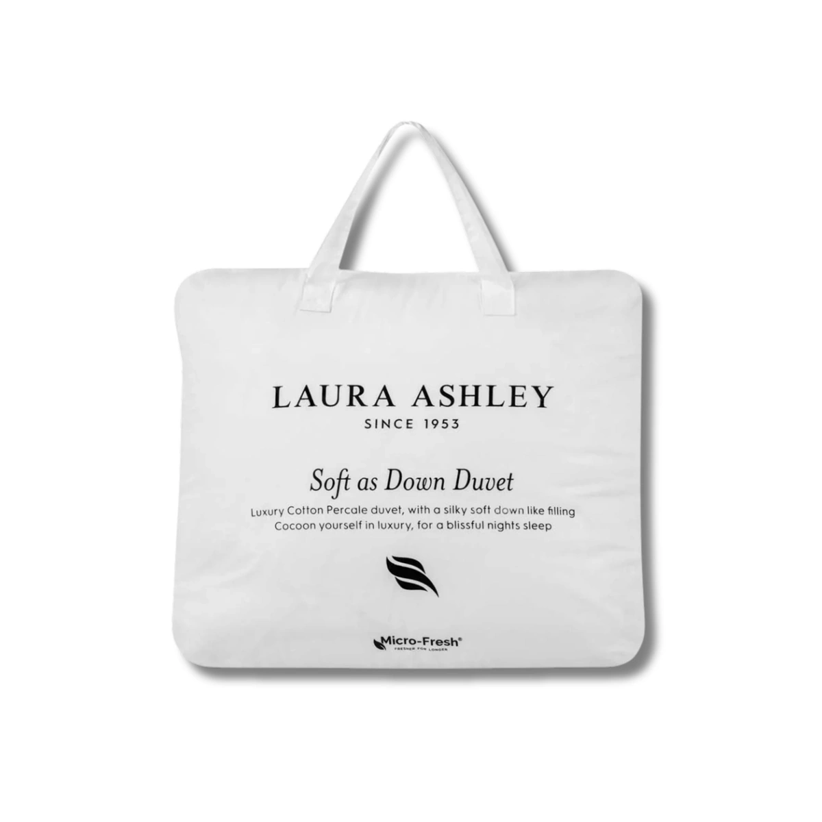 Sleep in comfort with this luxury 4.5 tog cotton percale duvet, featuring a soft down-like microfibre filling. Lightweight, anti-allergy, easy-care, and made with 100% cotton for a fresh, breathable sleep.