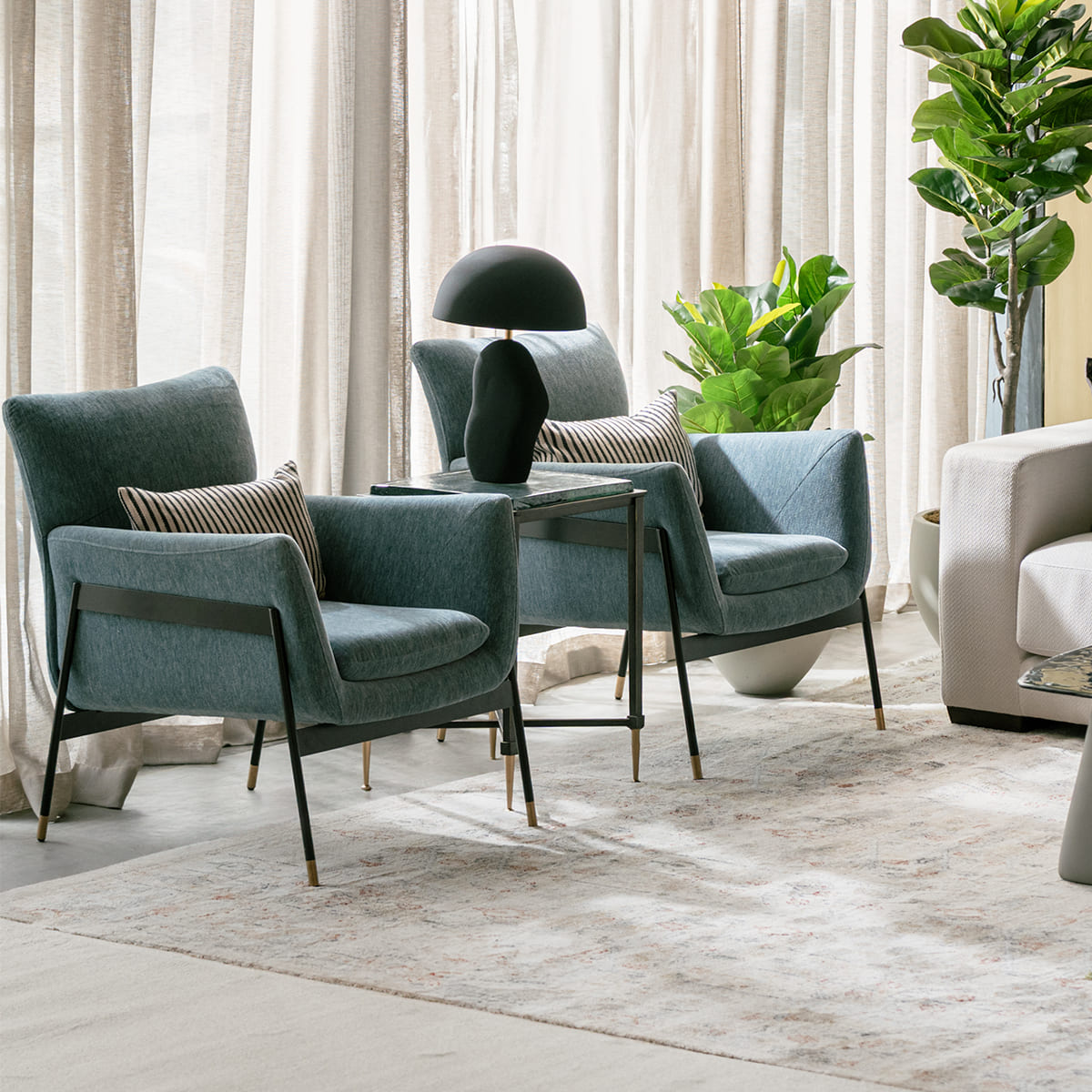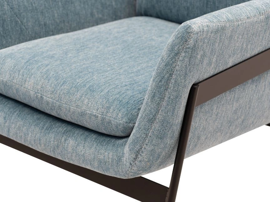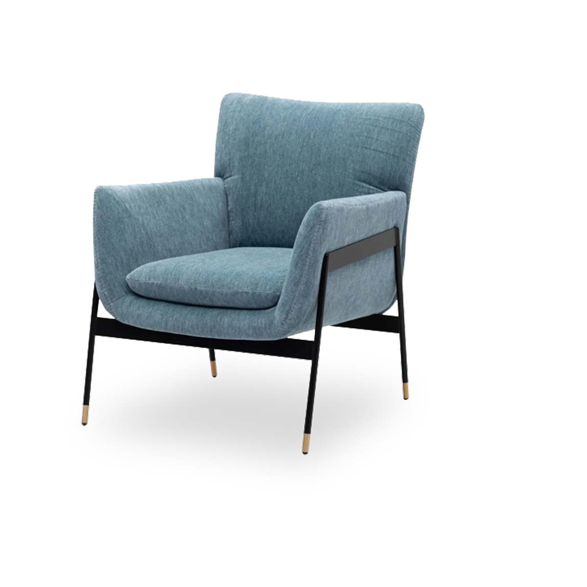 Our Leah Armchair is upholstered in high-quality fabric, providing a bold yet inviting texture. The striking blue hue enhances the contemporary design, adding a touch of modern flair to any room.