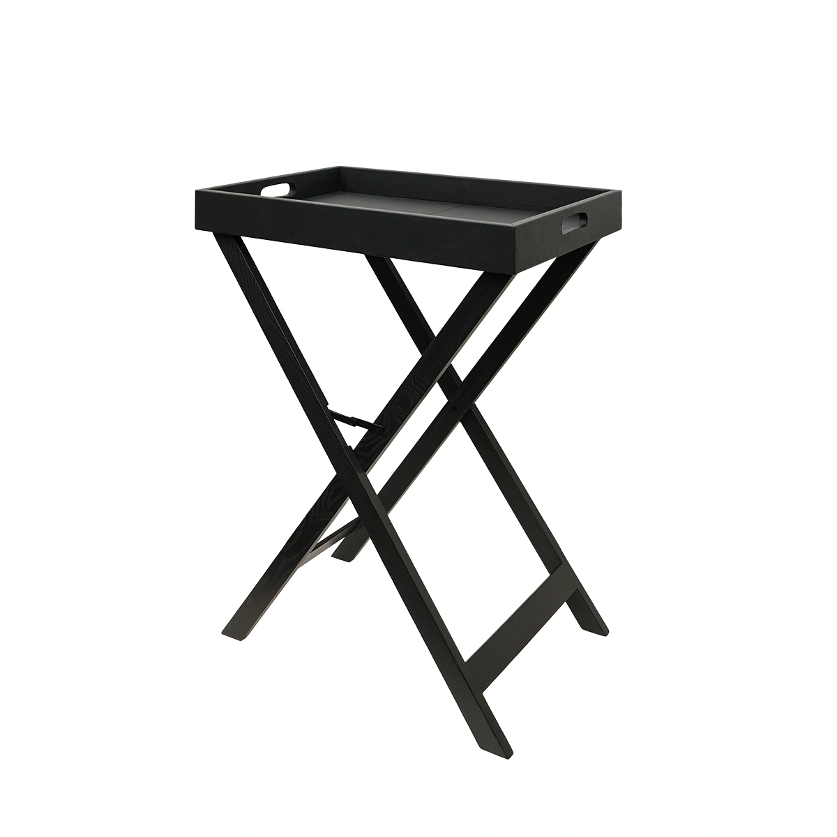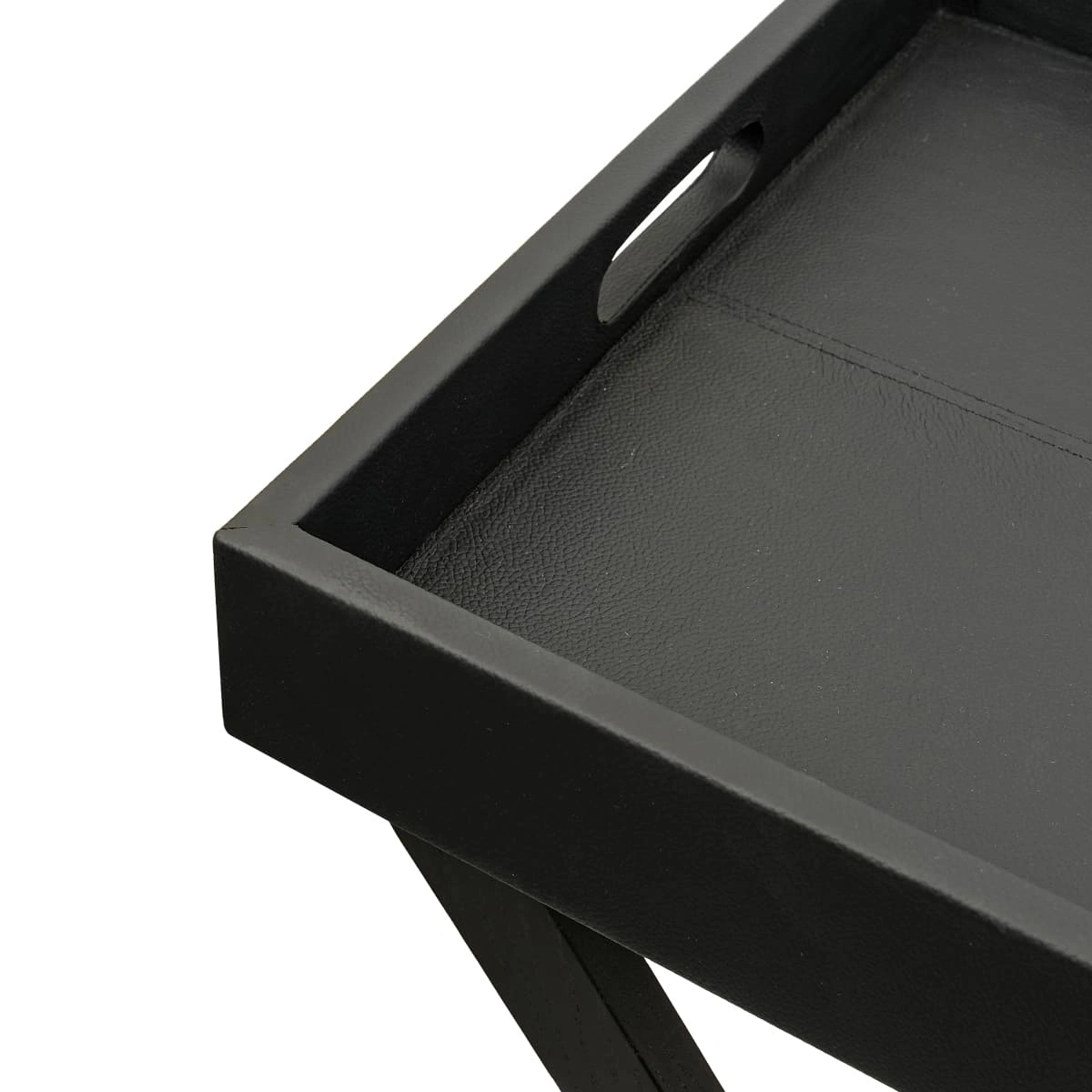 Leather Tray with Folding Stand – Black