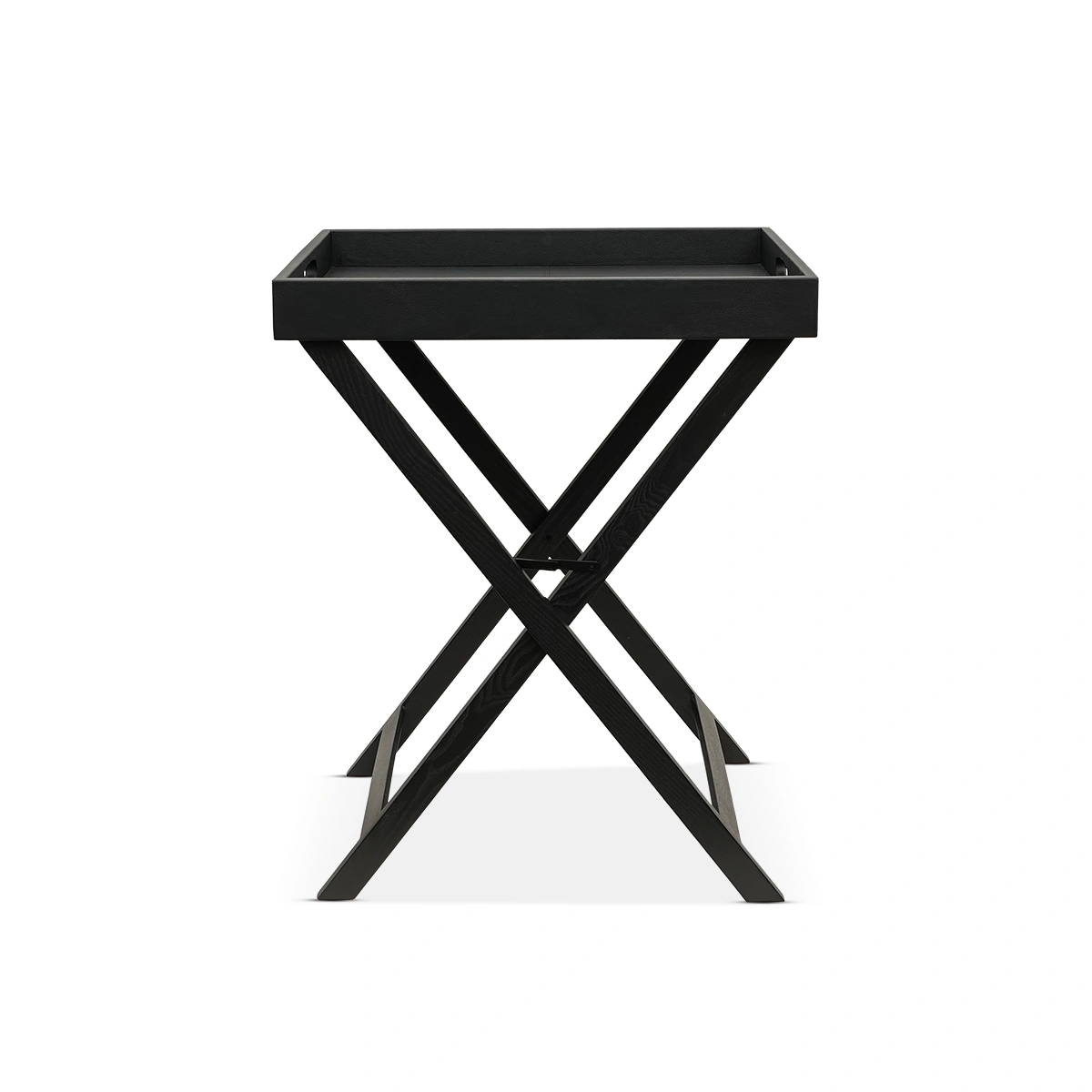 The Leather Tray with Folding Stand includes a black leather tray and collapsible wood base. Easy to move and style, it’s a practical solution for serving, layering, or entertaining.