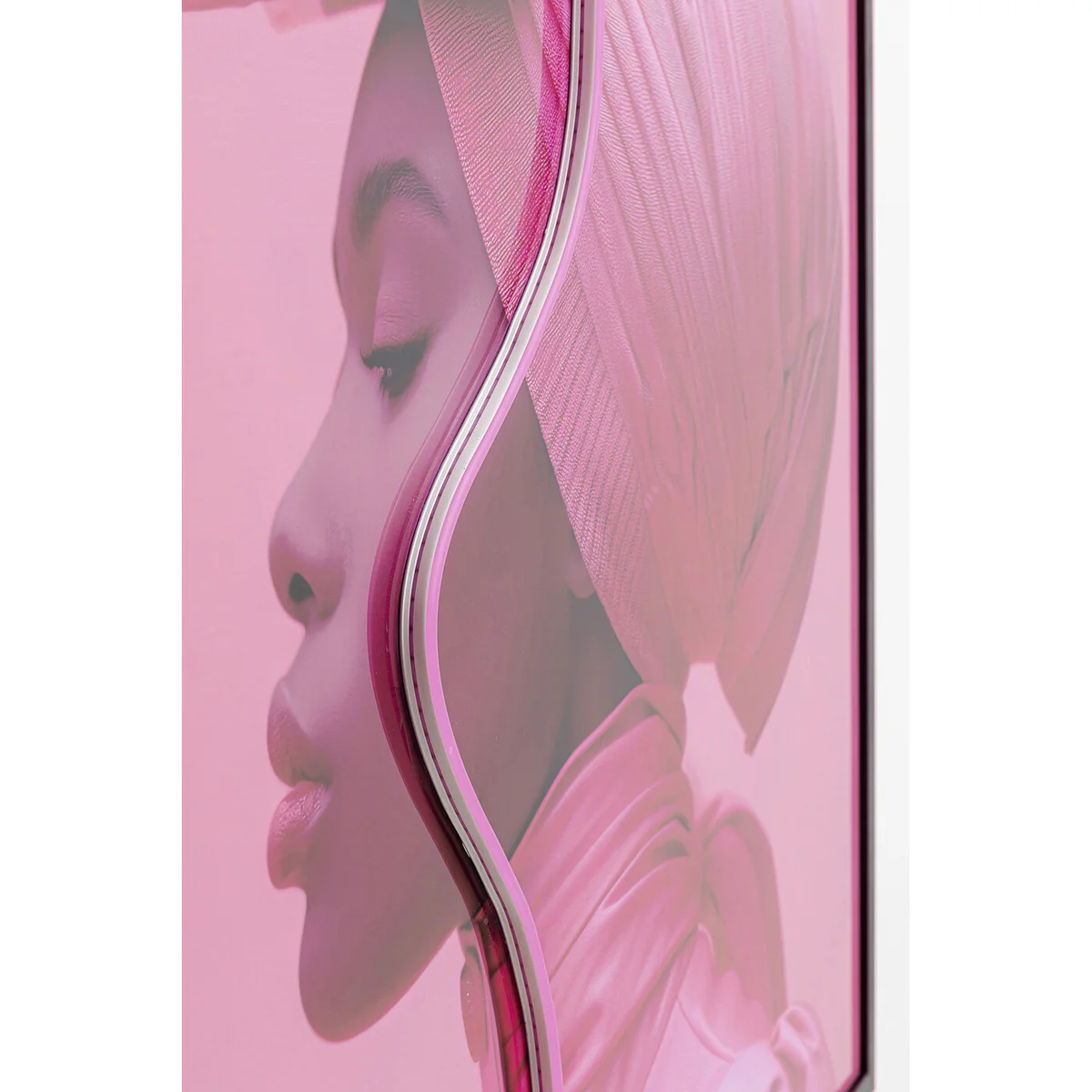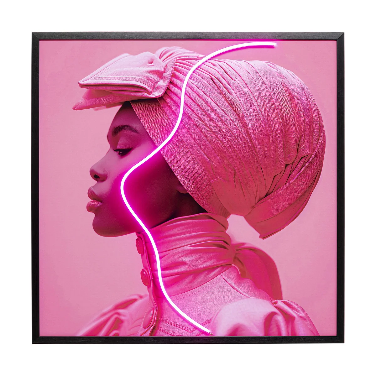 Make a bold statement with this LED Framed Picture of a Pink Woman in High-Gloss Acrylic Print. This modern piece of wall art instantly brings a touch of glamour and sophistication to your space.