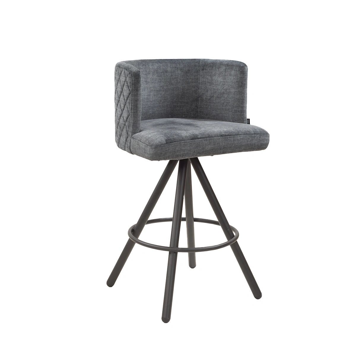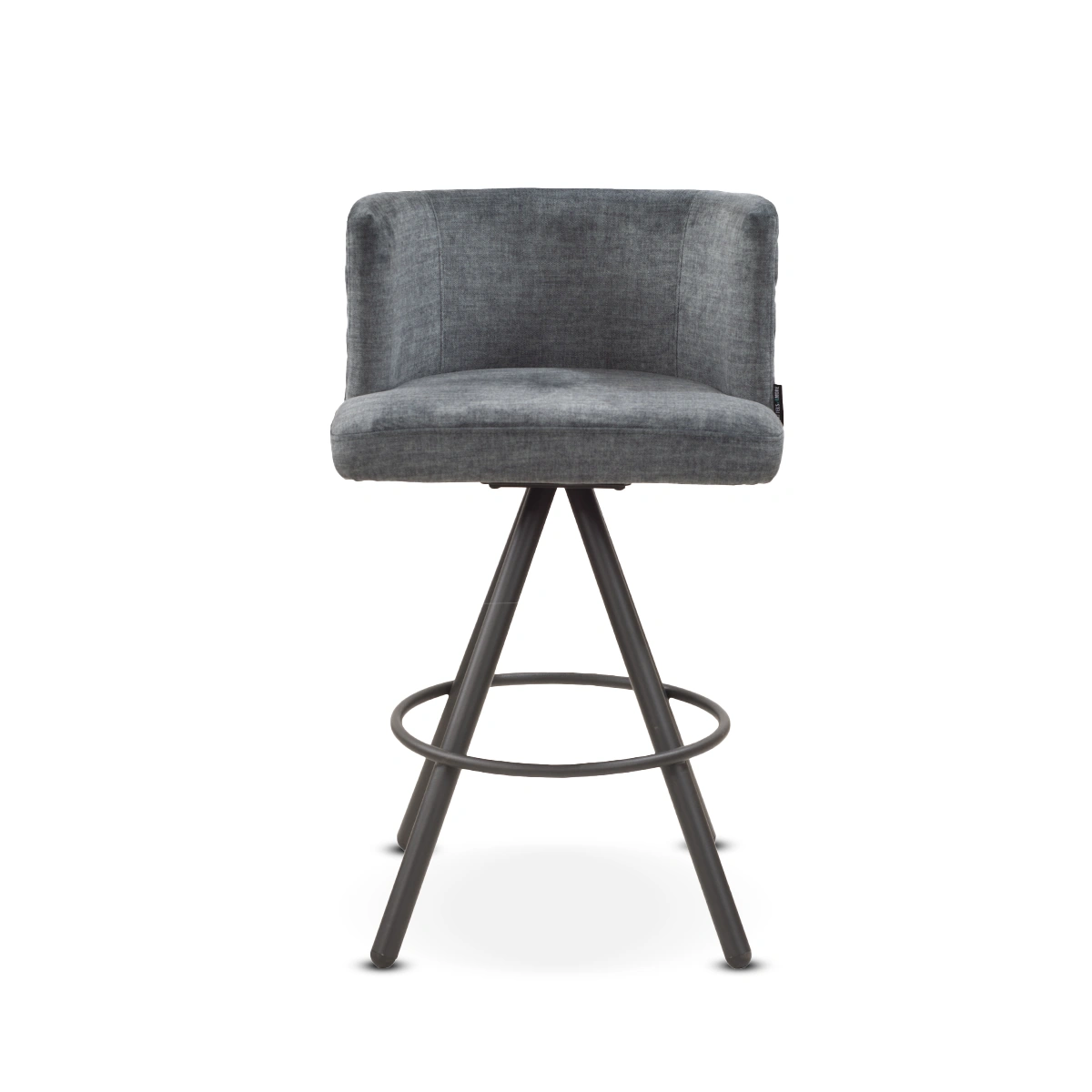 This barstool features a smooth, upholstered seat made from premium grey velvet and a sturdy steel base equipped with a swivel mechanism. The foam padding ensures maximum comfort, while the dimensions (L 51.5 cm | W 48.5 cm | H 87 cm) make it an ideal fit for any bar counter or kitchen island.