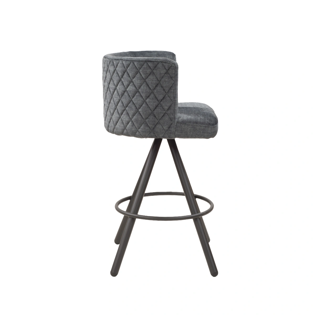 Levi Swivel Barstool in Grey Velvet, Standard Size with Integrated Base