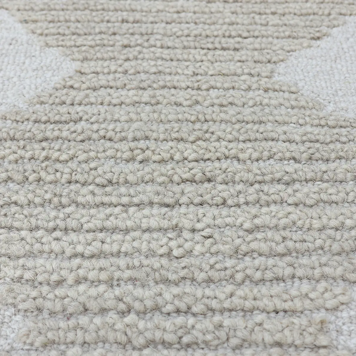 Lisbet Carpet in taupe is a hand tufted wool carpet ideal for larger modern spaces. Its soft texture and neutral tone create a refined floor presence. Featuring 100% wool pile and durable hand tufted construction, it ensures plush comfort. Dimensions: L 250 cm, W 350 cm.