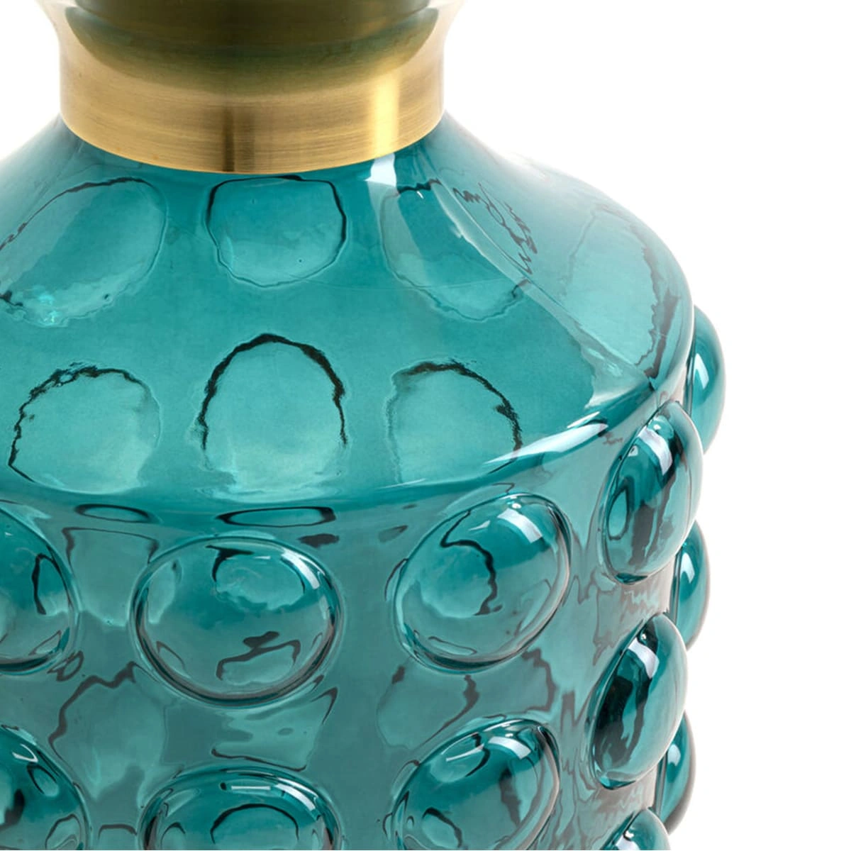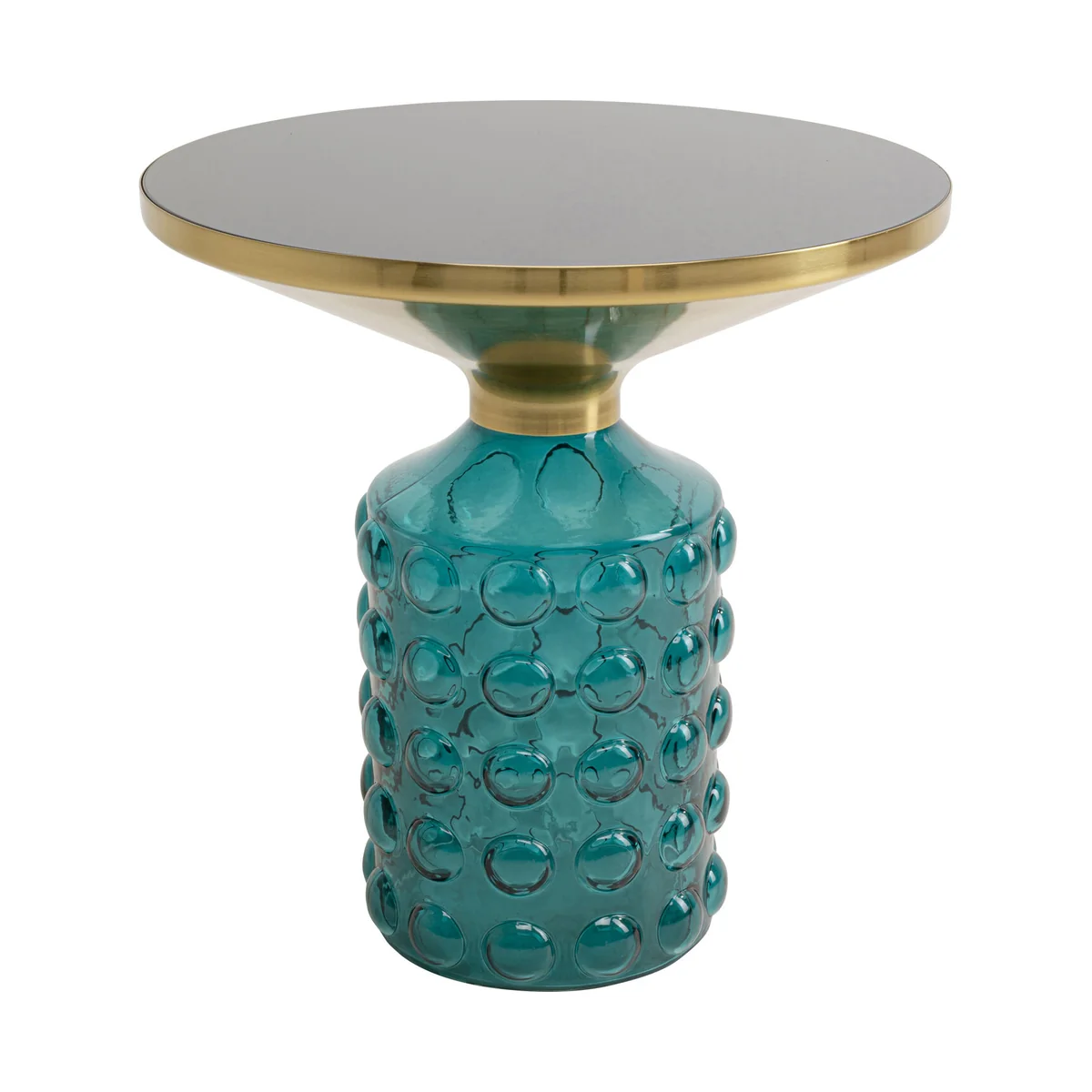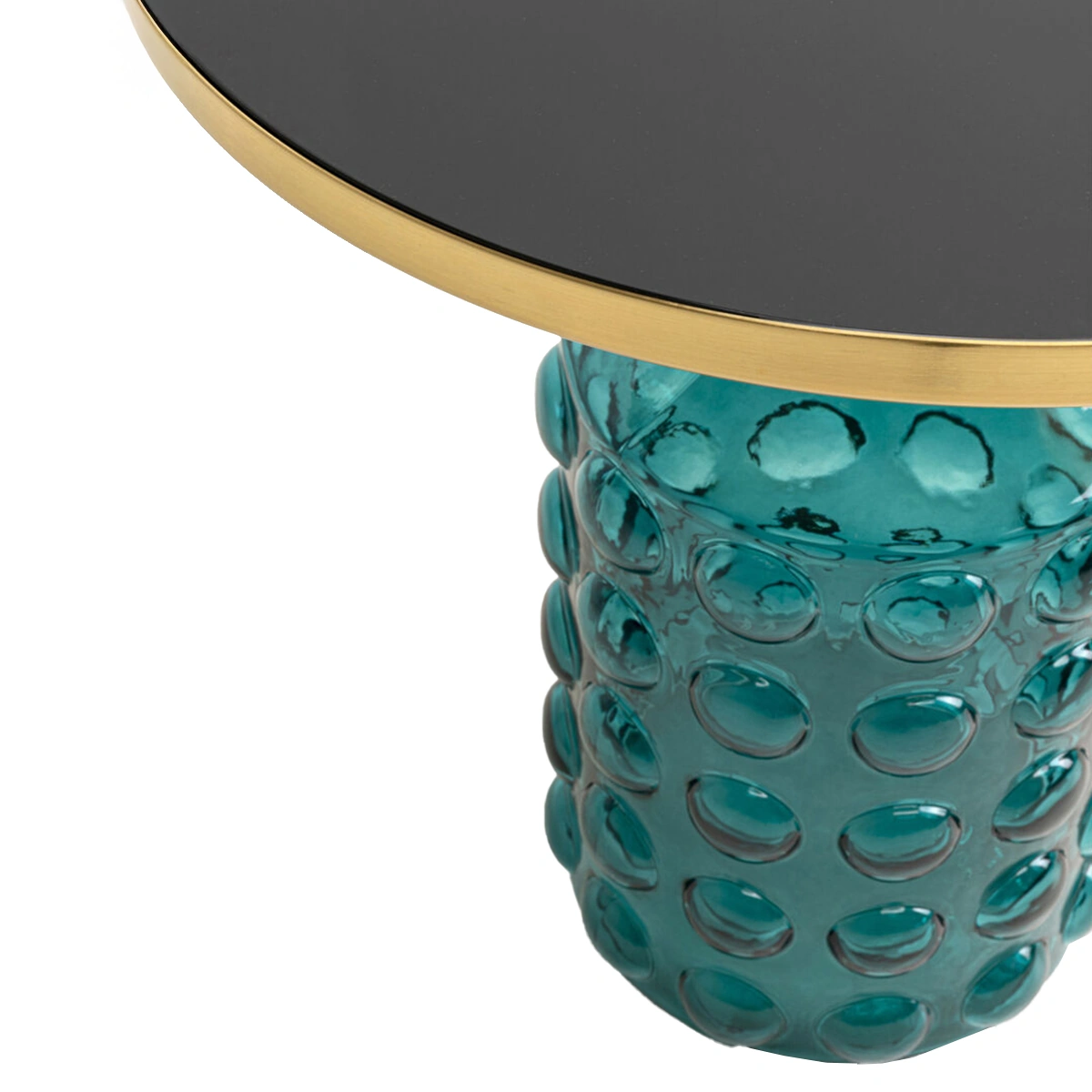 Lola Blue Glass Side Table with Gold Accents and Black Top