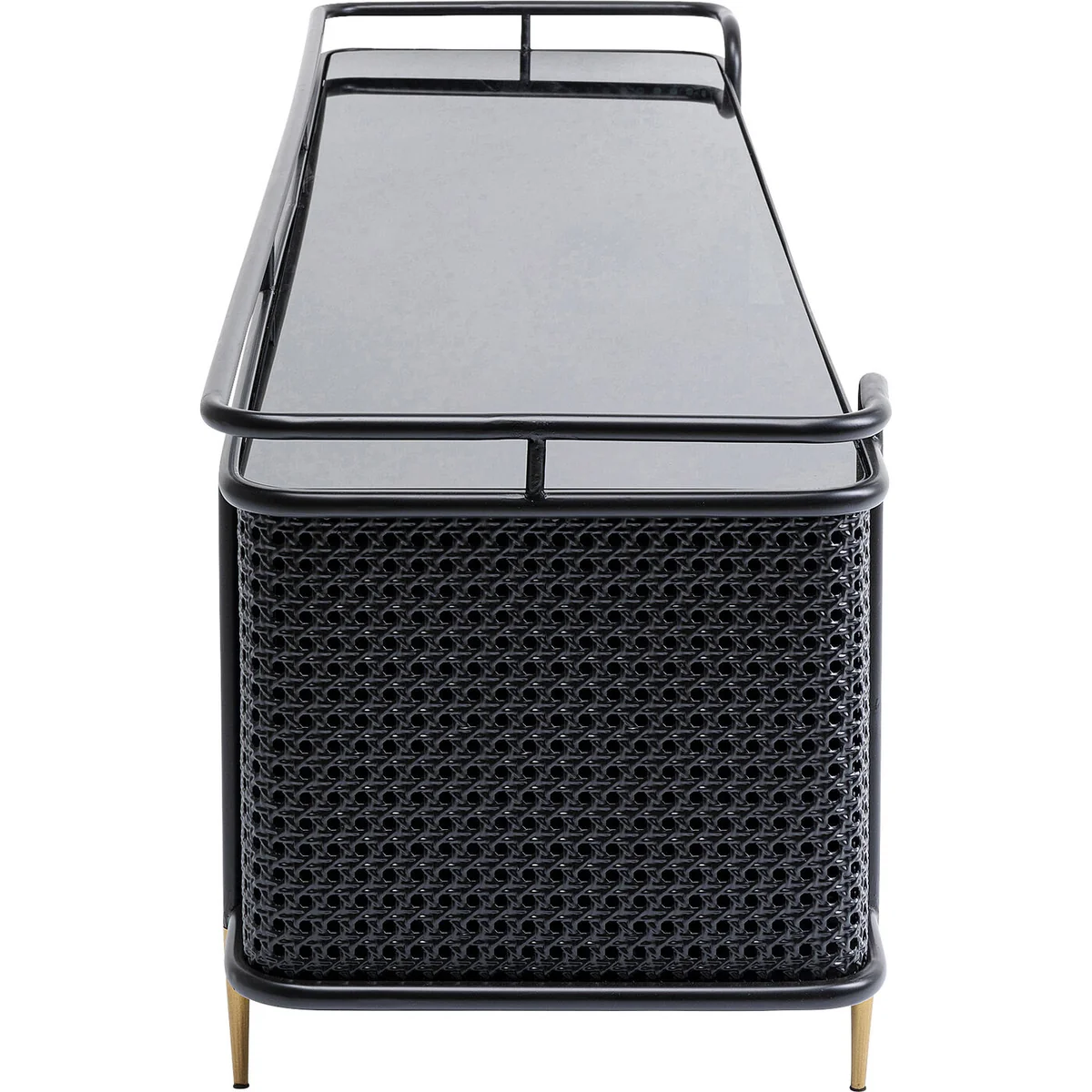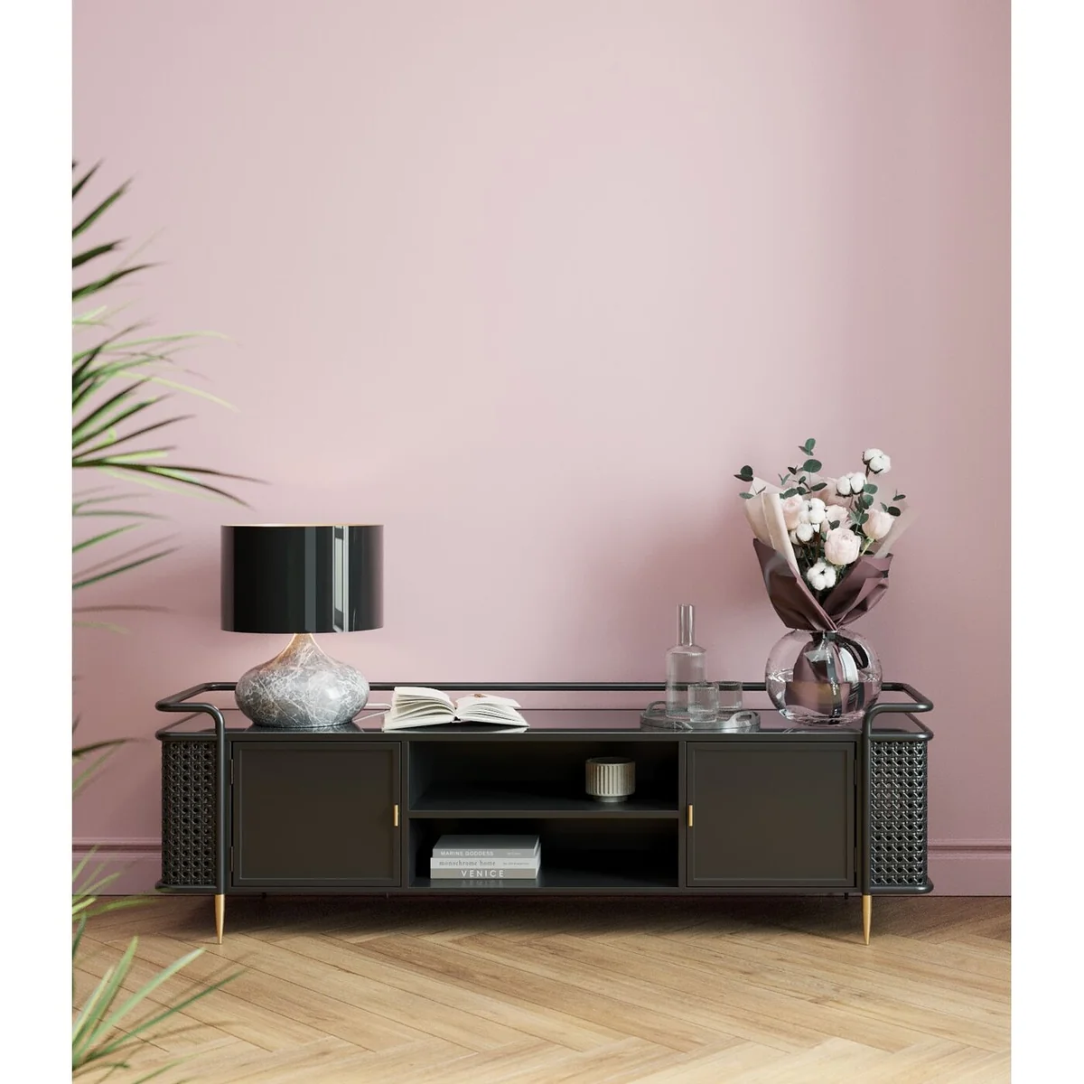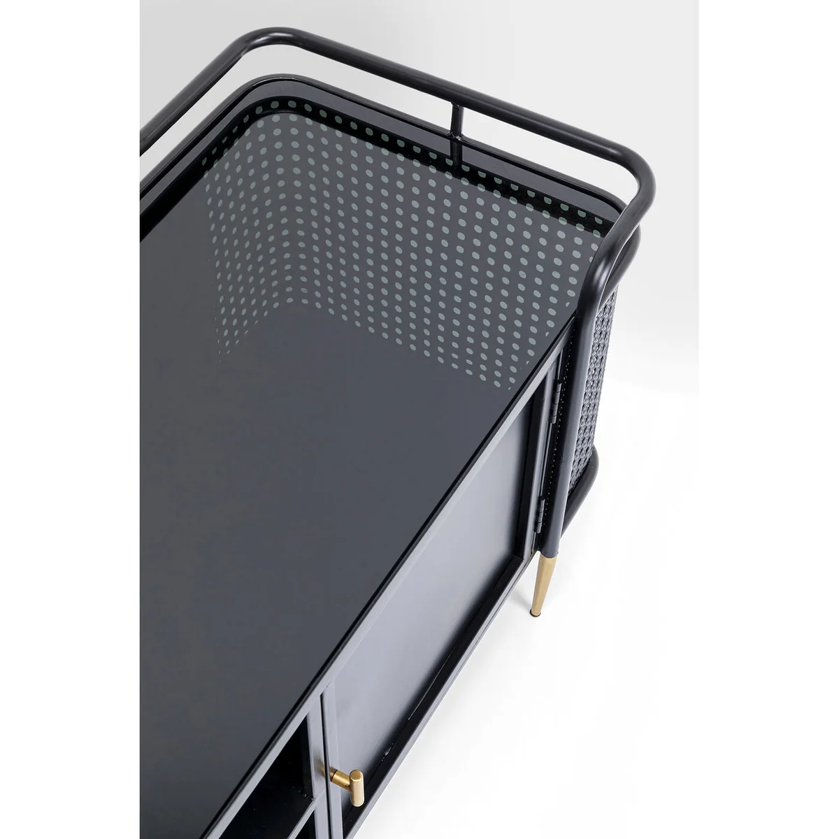 • Black metal lowboard with golden feet and handles • Steel furniture with an elegant touch is characteristi