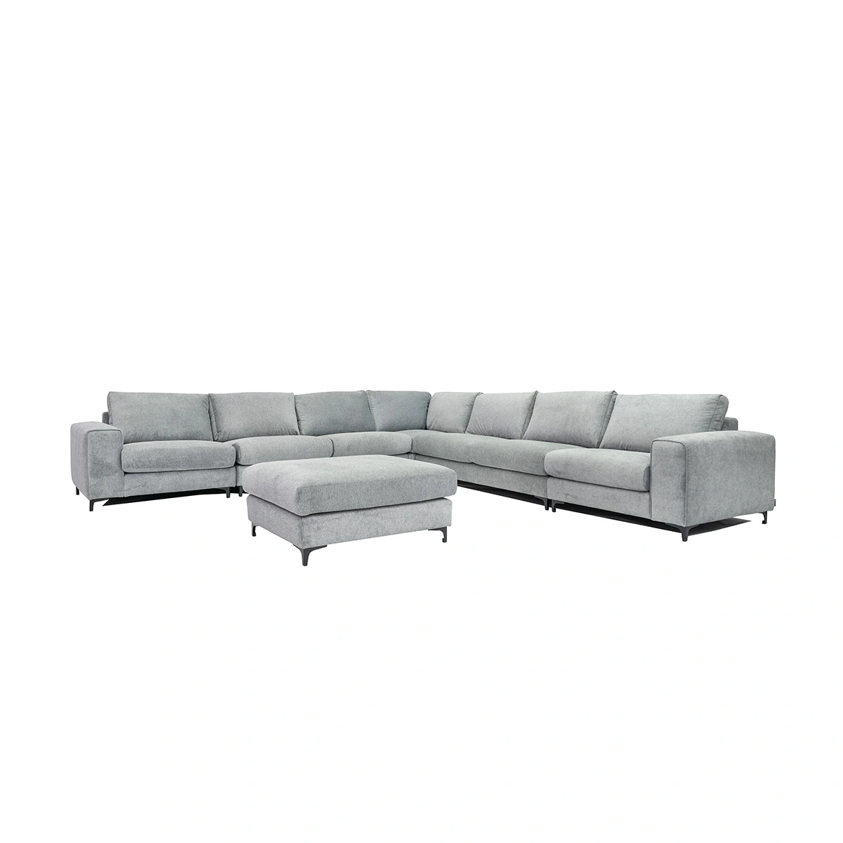 Crafted with a durable 100% polyester fabric, this sofa features zig-zag springs and high-resilience foam that deliver reliable support and long-lasting comfort. The natural solid wood frame provides stability, and the black metal legs add a stylish contrast to the soft grey finish. With its open-ended design, the Lua sofa allows easy pairing with other modular pieces or works beautifully on its own.
